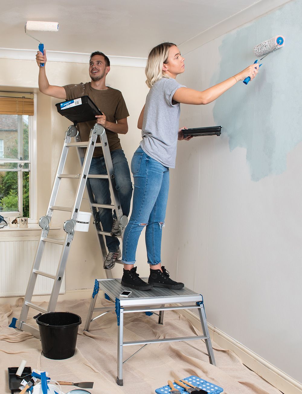 Mehrzwecksprossenleiter mit Einlegeboden 3,6 m 12 Sprossen