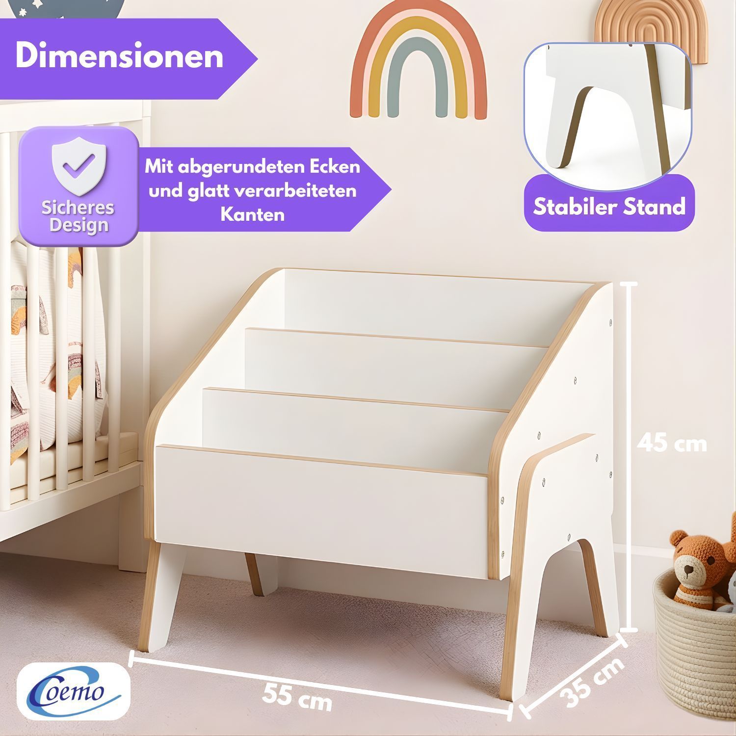 Mein-Regal Bücherbox MILL 55x35x45 cm Bücherregal 3 Fächer
