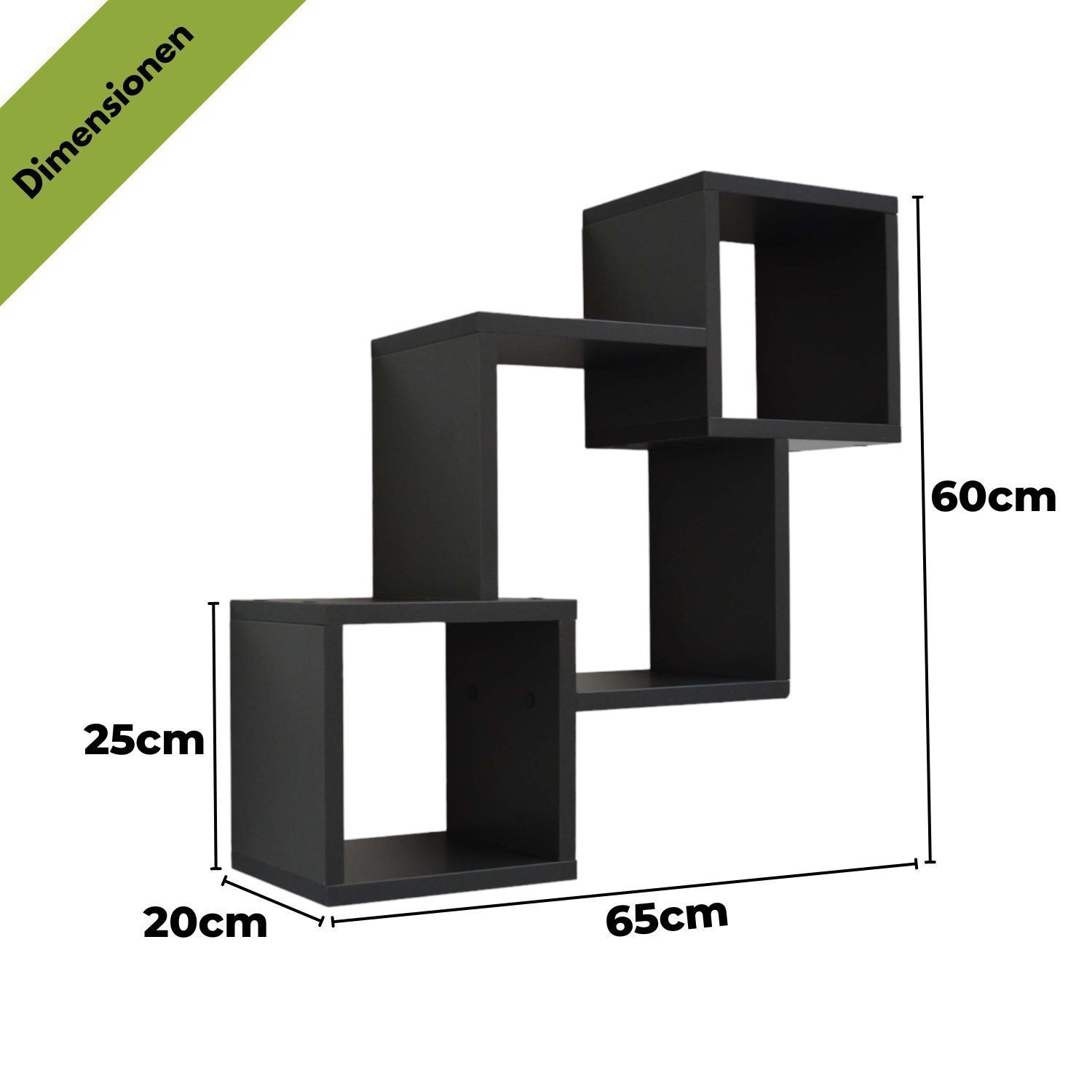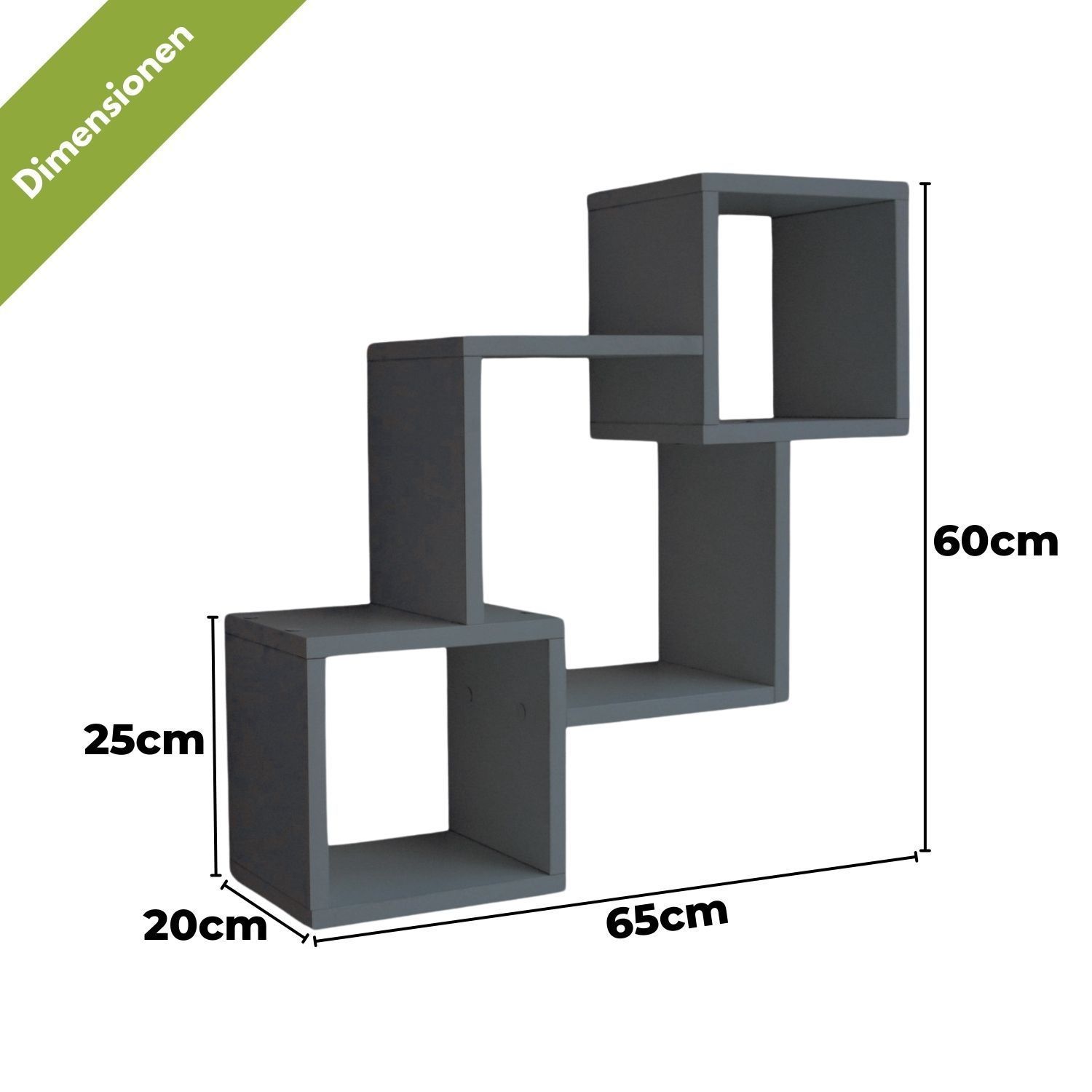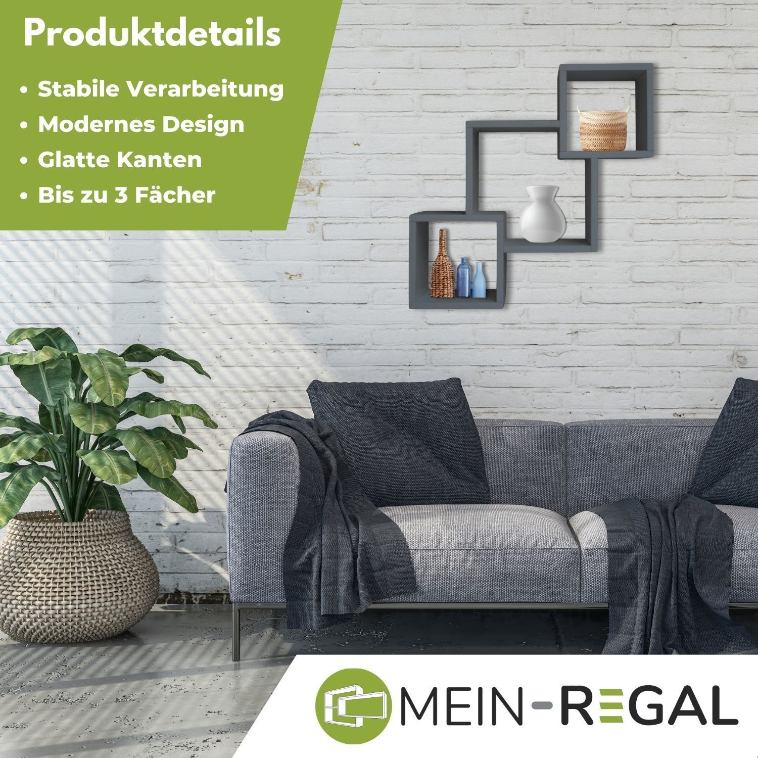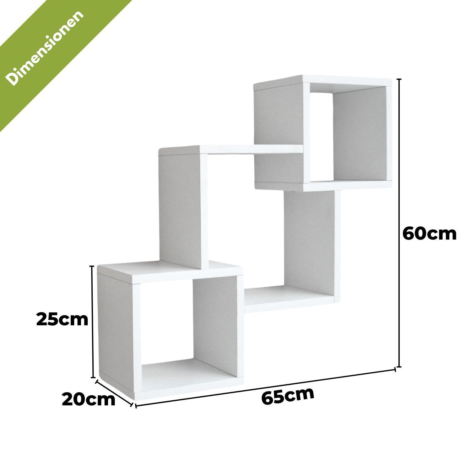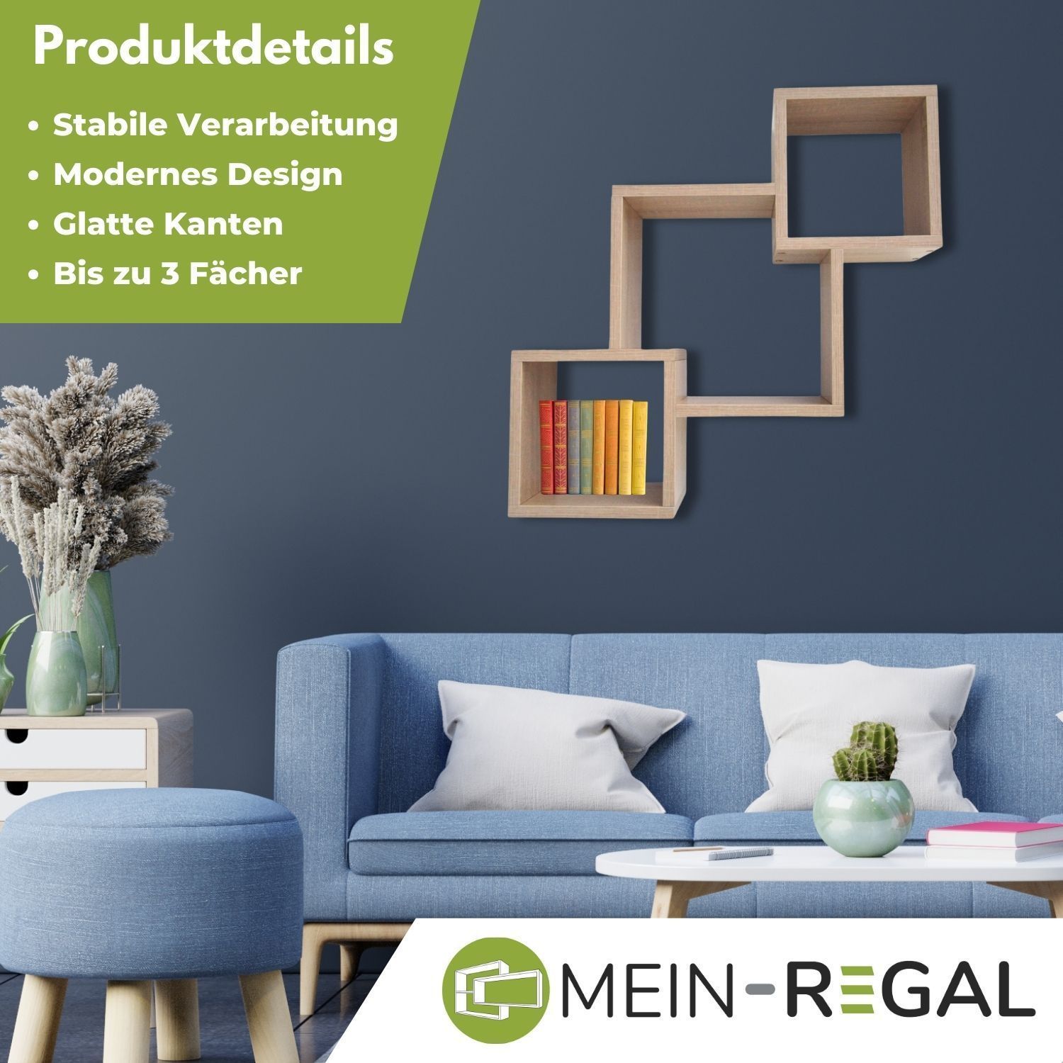 Mein-Regal Wandregal Connect aus Holz MDF, 3 Fächer vertikal versetzt