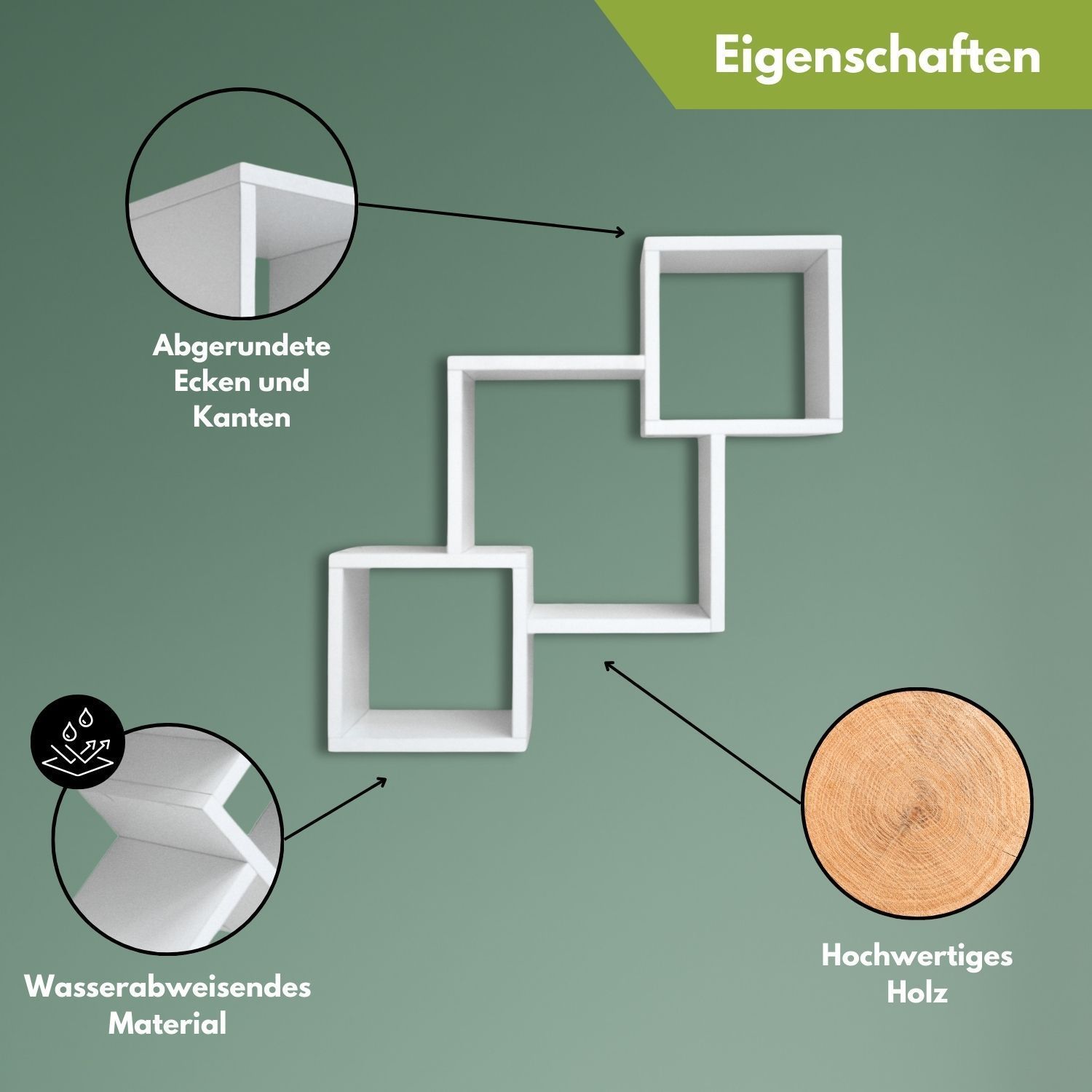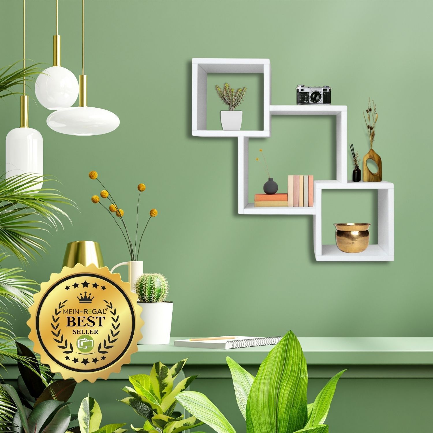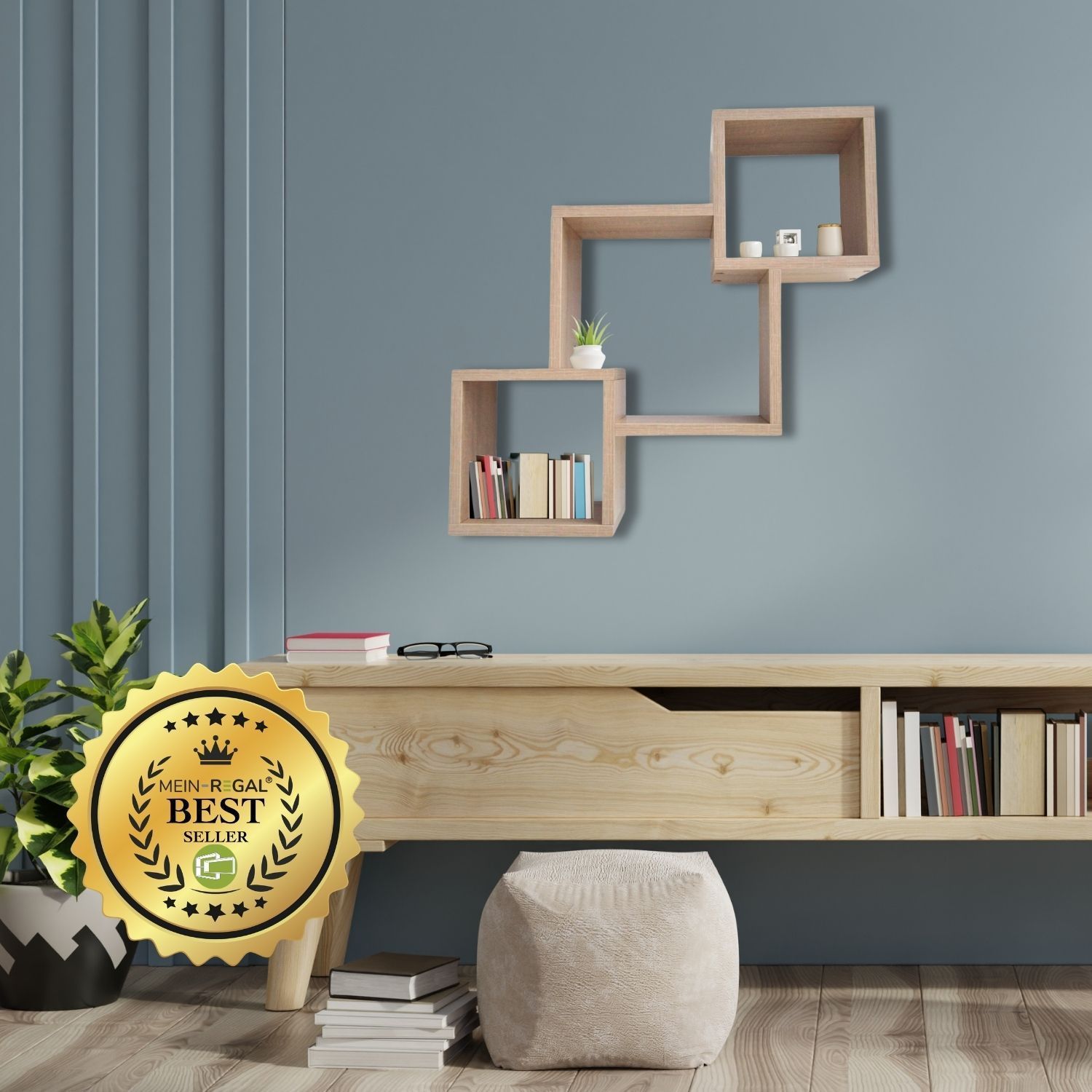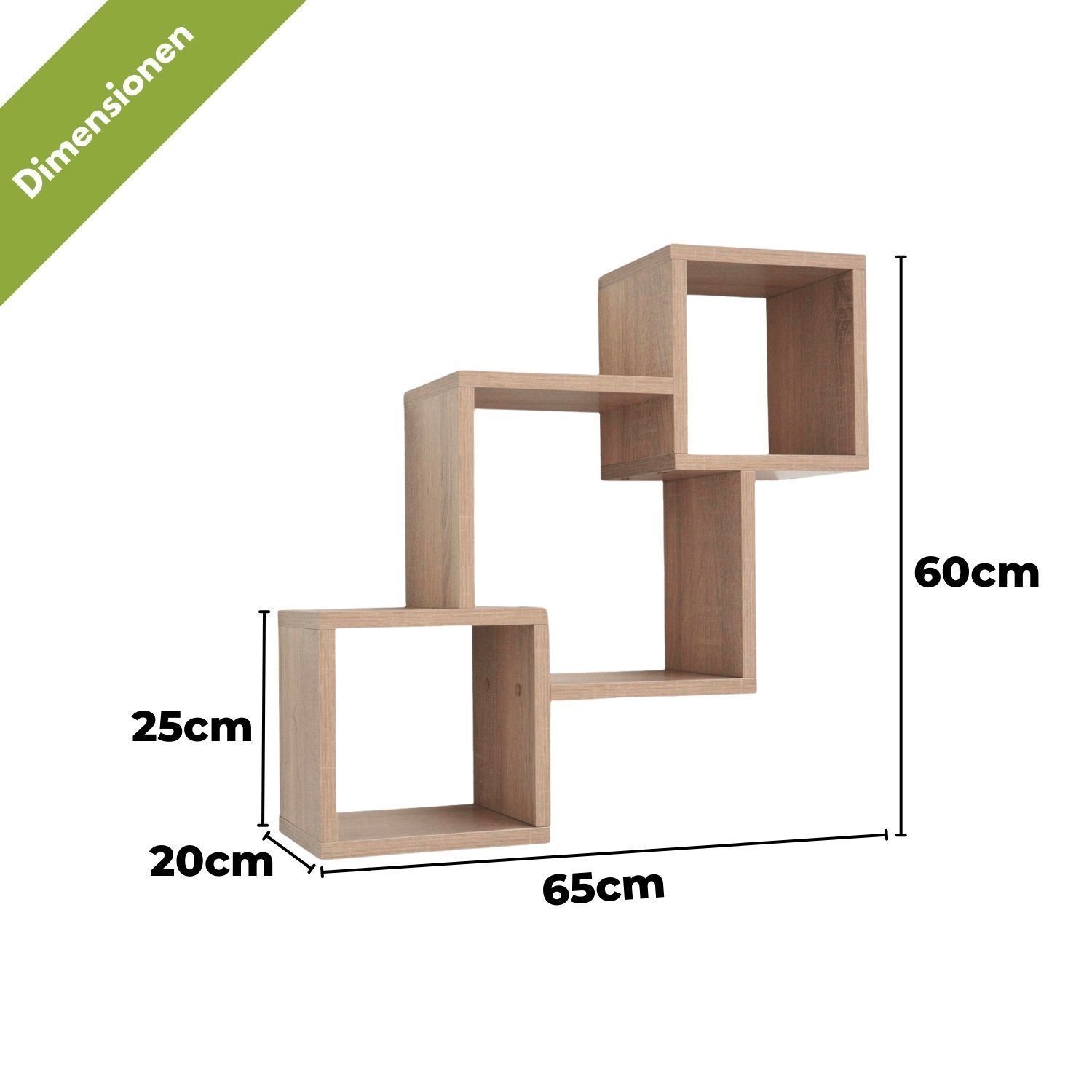 Mein-Regal Wandregal Connect aus Holz MDF, 3 Fächer vertikal versetzt
