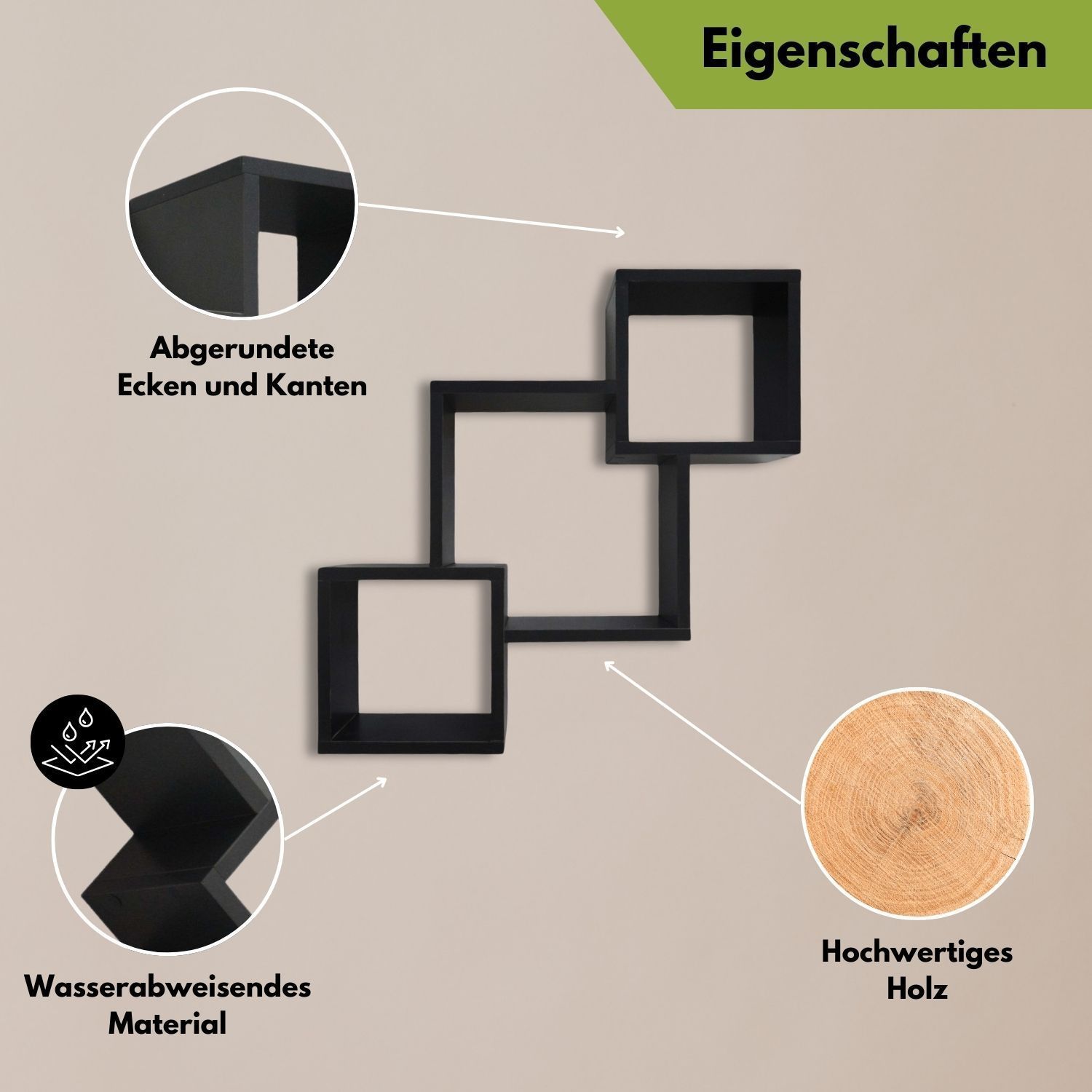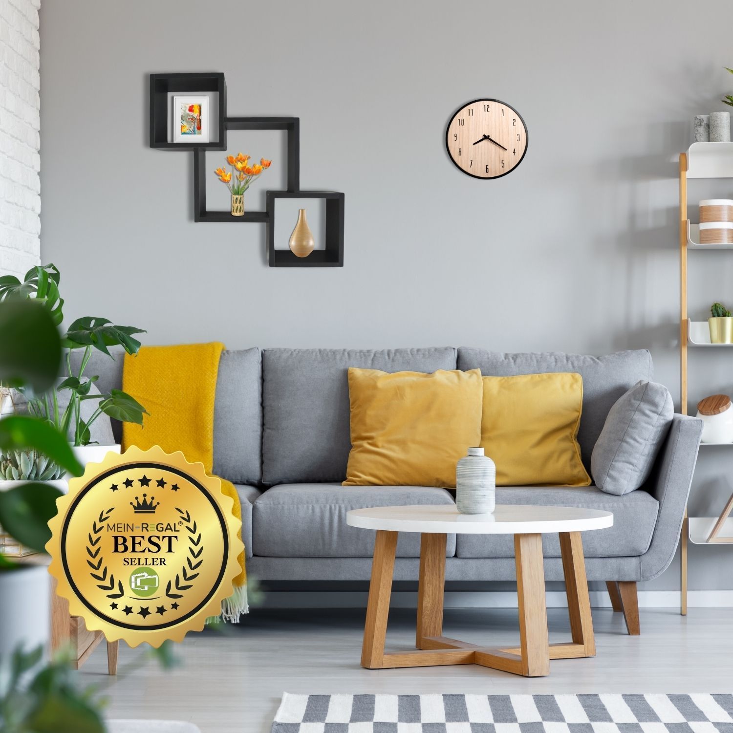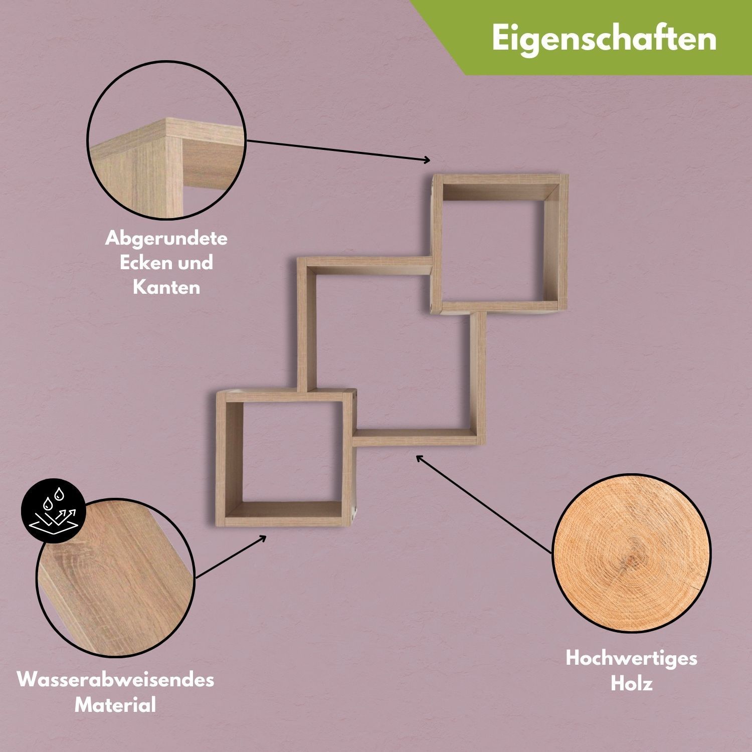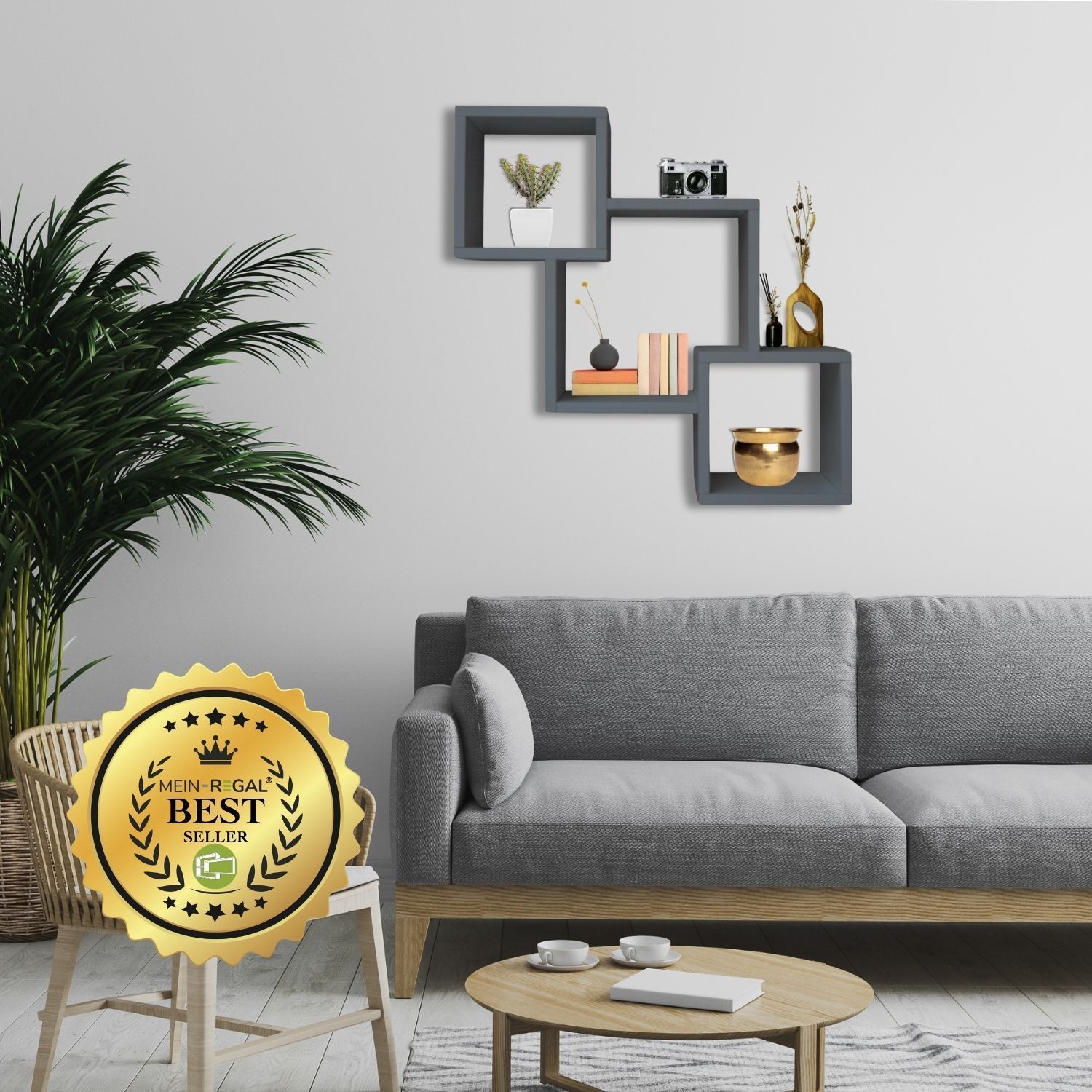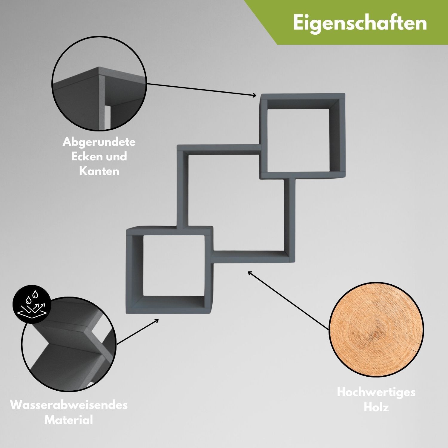 Mein-Regal Wandregal Connect aus Holz MDF, 3 Fächer vertikal versetzt