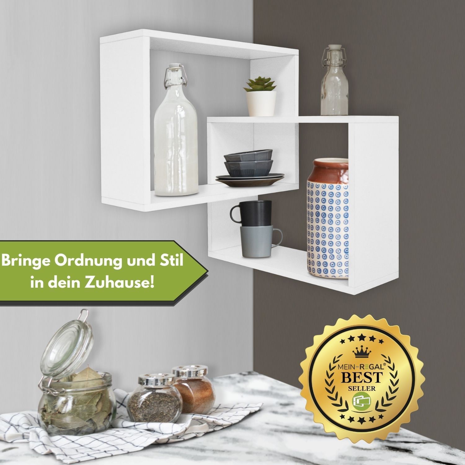 Mein-Regal Wandregal Quadra Eckregal aus Holz MDF, Wandeckregal
