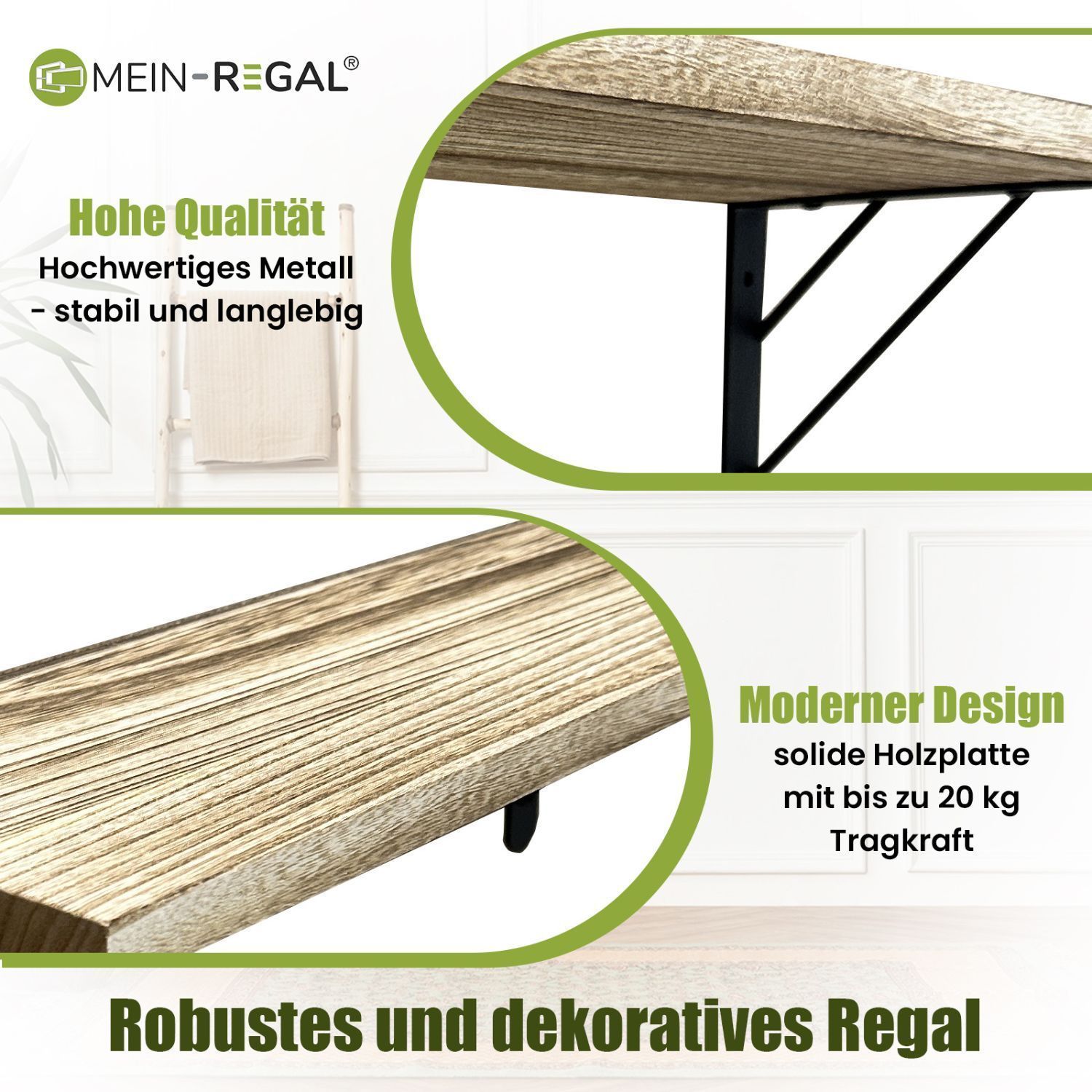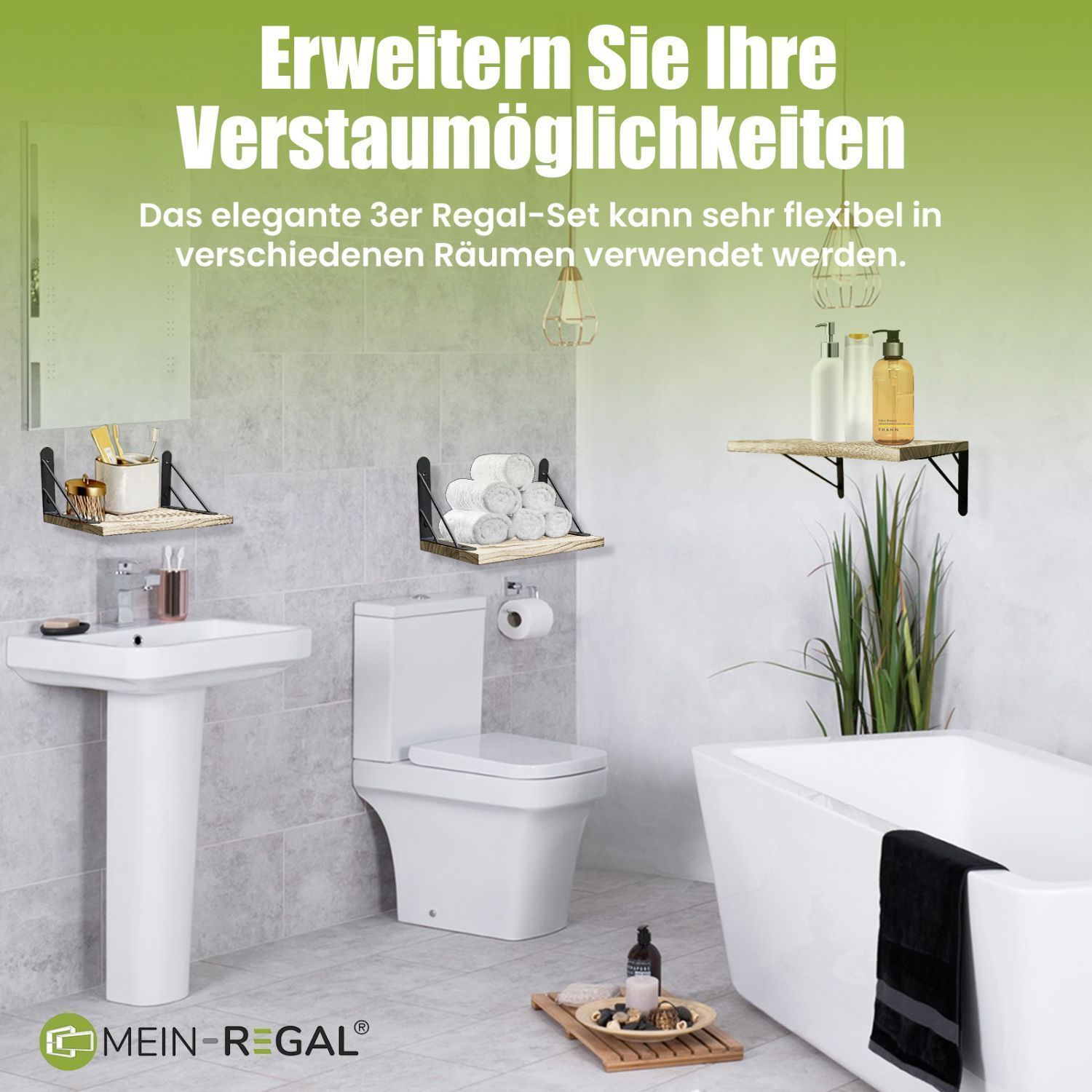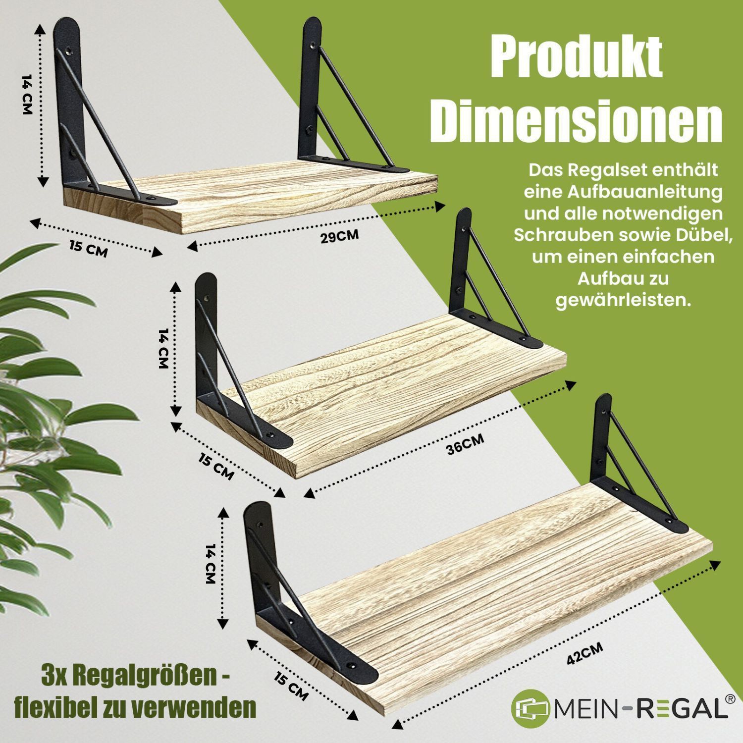 Mein-Regal Wandregal Sam Set 3 Stk. aus Holz, 3 verschiedene Größen