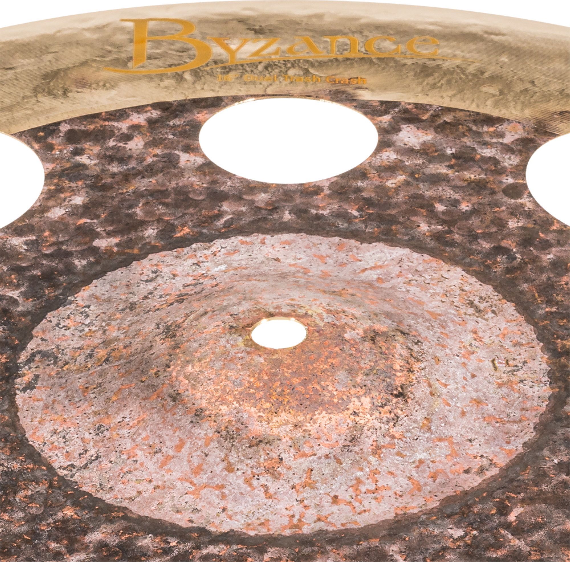 Meinl Byzance Trash Crash 16' made in Turkey Material: B20 Bronze Gewicht: thin Herstellungsmethode: handgehämmert Charakteristik: komplex, voll, musikalisch, schnelle Ansprache, weich, warm Volume: leise Sustain: medium bis kurz Abdrehung: narrow blade Pitch: low-mid Finish: raw, brilliant, traditi