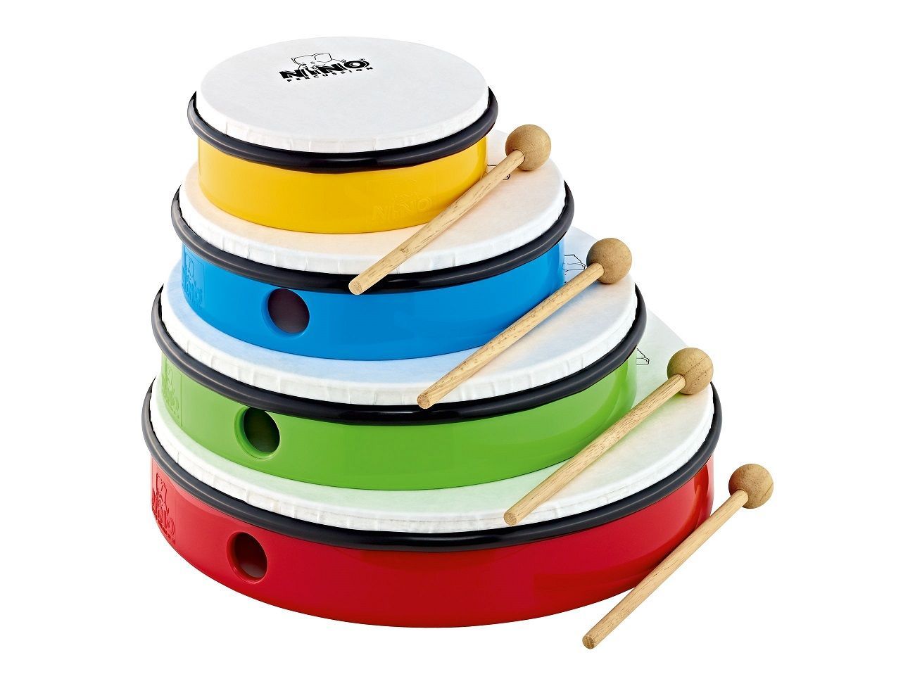 Meinl Nino ABS Hand Drum Set NINO Instrumente wurden speziell für Kinder designed, um die Anforderungen der musikalischen Früherziehung, Kindergärten, Schulen, Musiktherapie und anderer musikalischen Aktivitäten zu erfüllen. Die perfekte Hand-Percussion Sammlung für kleinere Gruppen bis hin zu vier