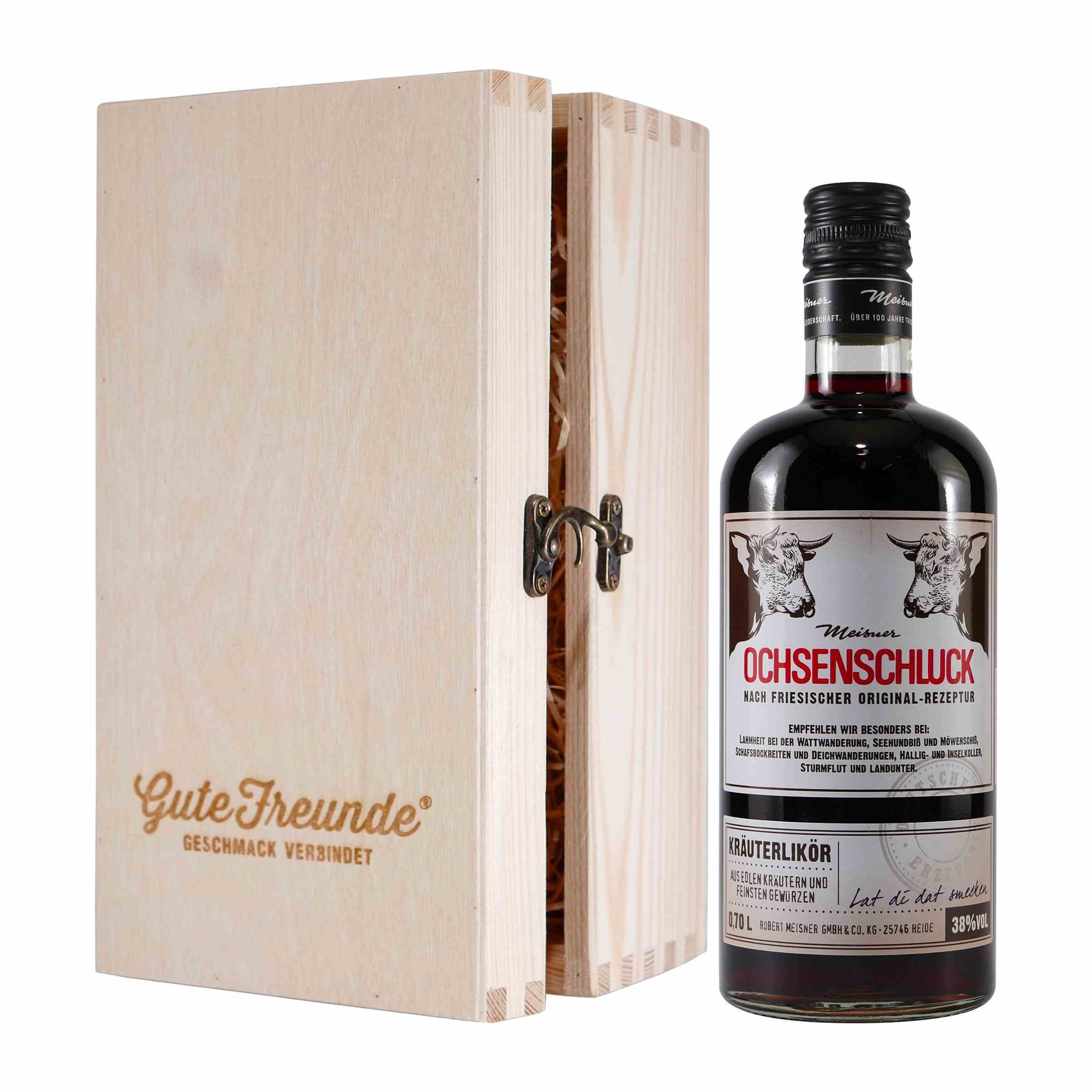 Meisner Ochsenschluck Kräuterlikör mit Geschenk-Holzkiste