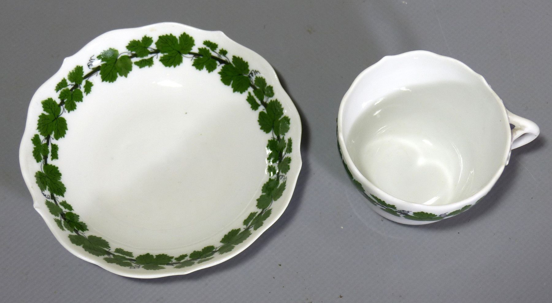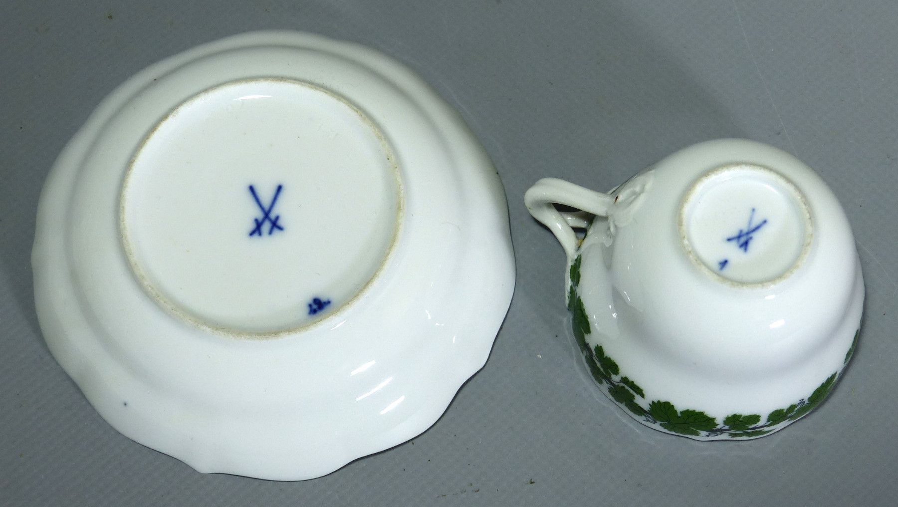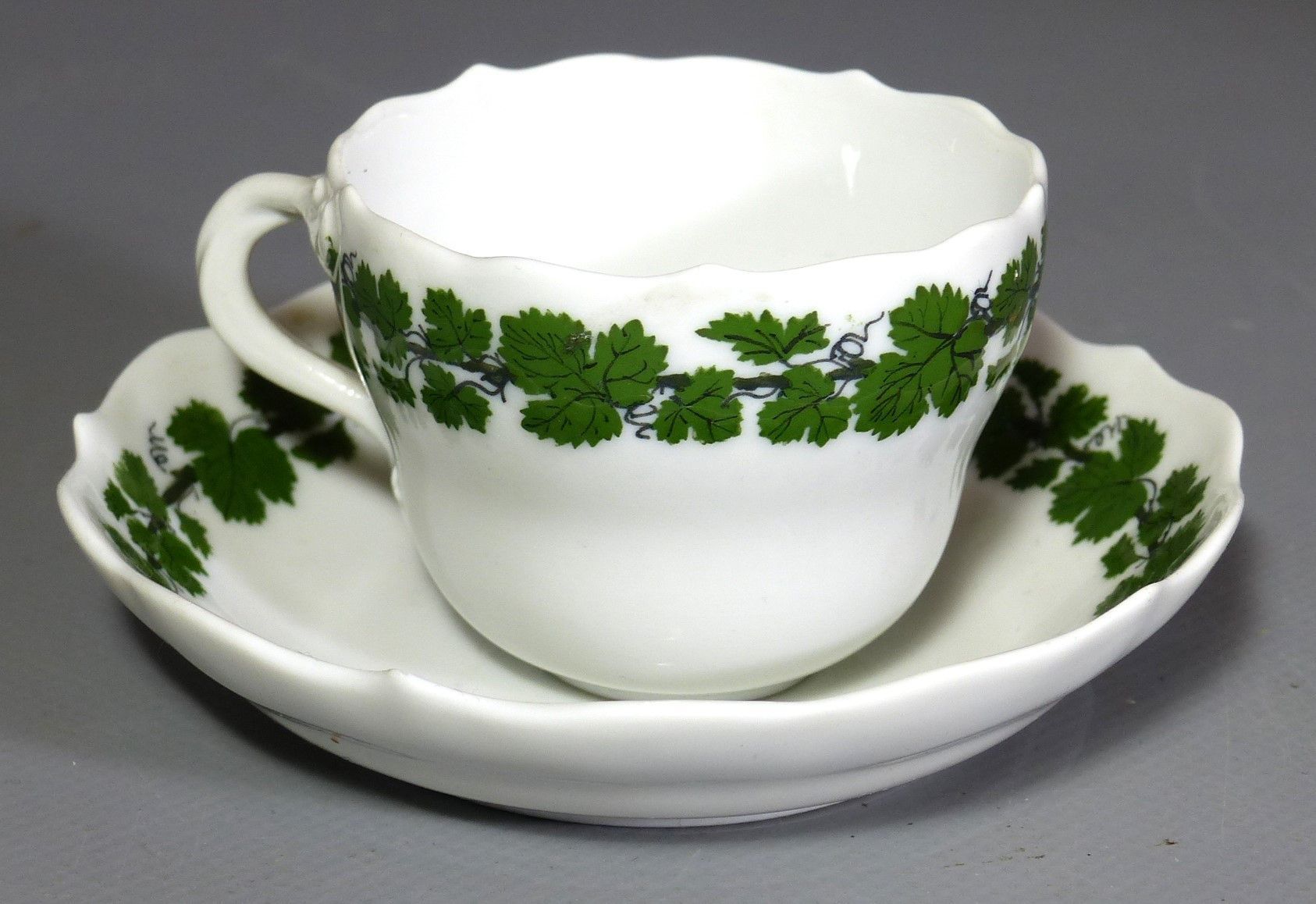 Meissen Porzellan Mokka-Gedeck Mokkatasse Weinlaub Weinkranz Weinblatt Schwerter