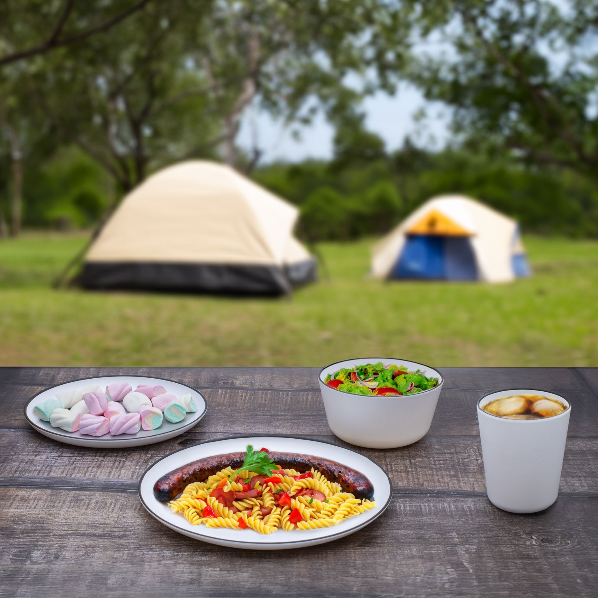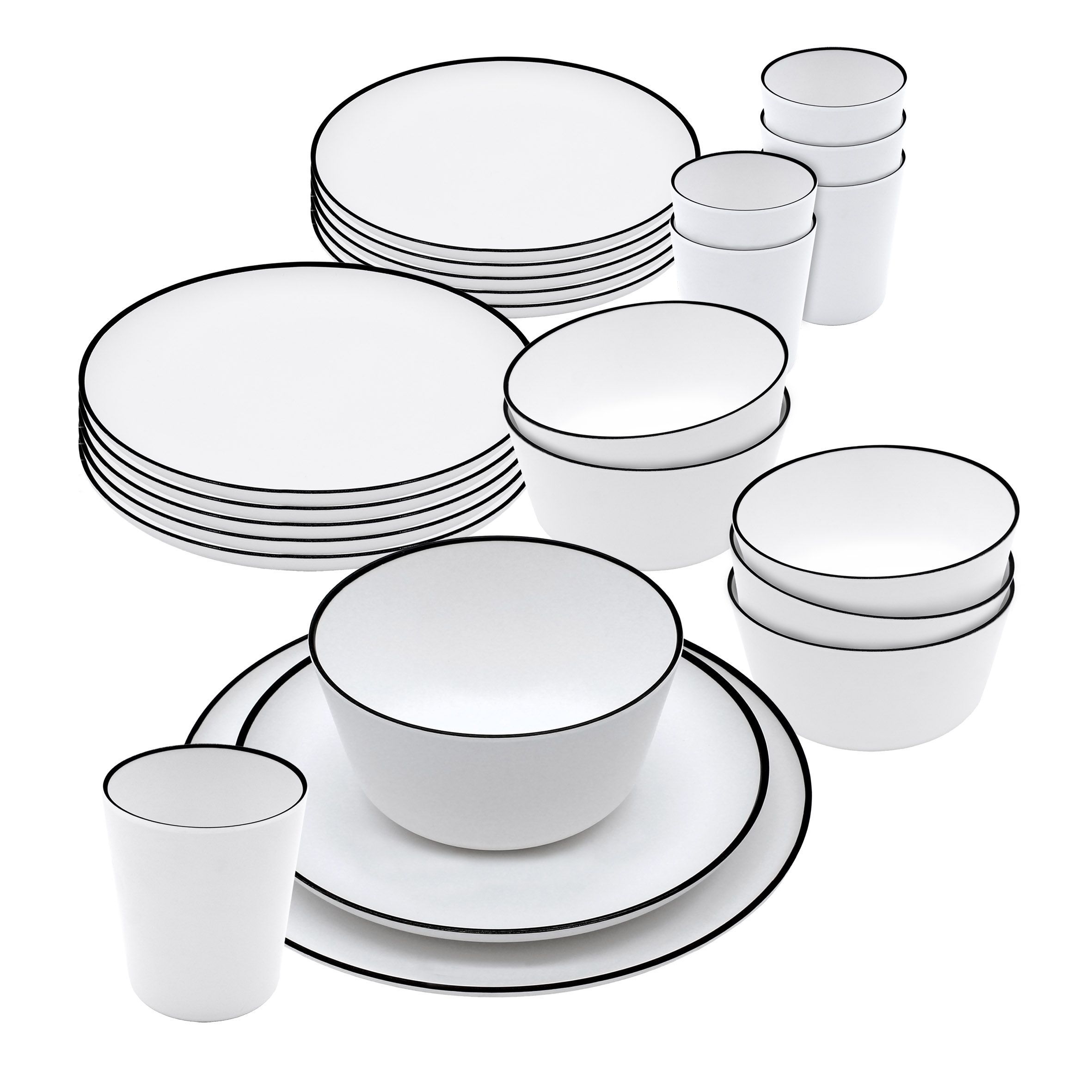 Melamin Camping Geschirr Set weiß - 24 Teile - Picknick Outdoor Tafel Service