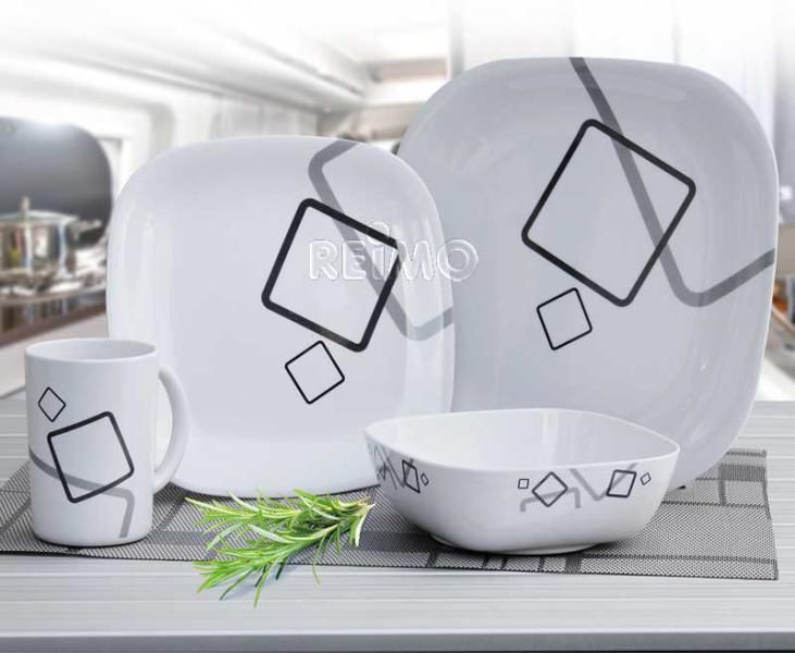 Melamin Geschirr-Set 16-teilig für 4 Personen, Cuneo. Mit Antirutschring