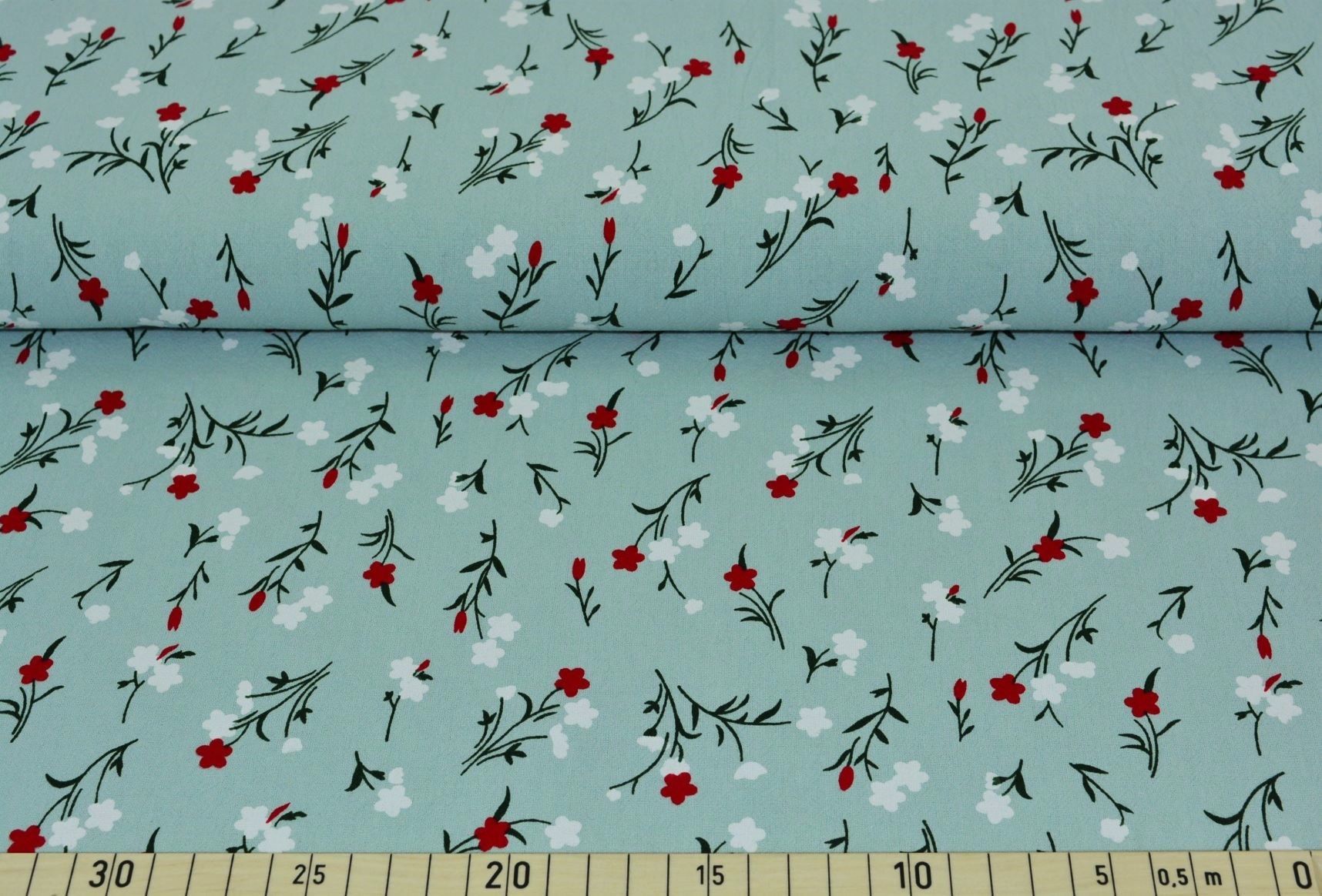 Melanie, gekochter Baumwollstoff, Blumenzweig, mint, Verkaufseinheit 0,25 m