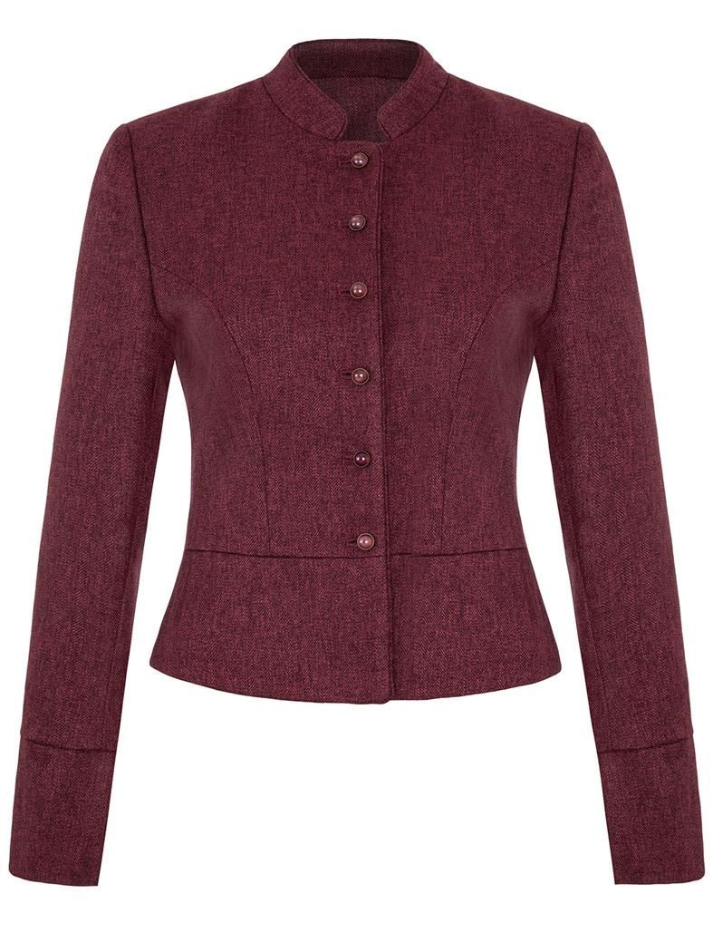 Melega Trachtenjacke beere Hochwertige Jacke für Damen. Der Janker fällt besonders durch den tollen Oberstoff mit dem Fischgrätmuster in beere auf. Die Jacke hat einen figurformenden Schnitt mit Wiener Nähten und einem Schößchen.