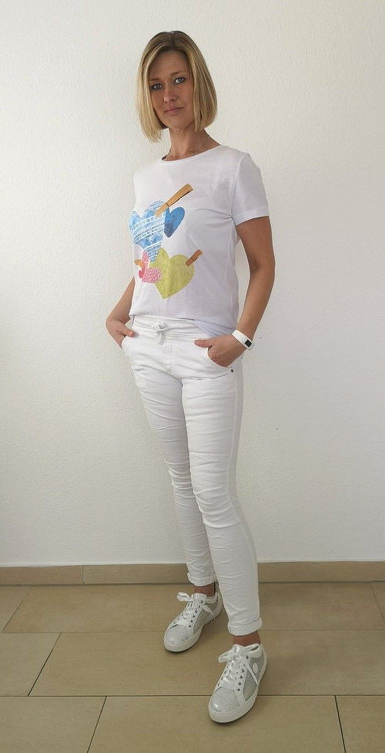 Melly & Co Hose Jogger Jeans Jogpant 8139-2 Denim Stretch Weiß Gr. XS-XXL