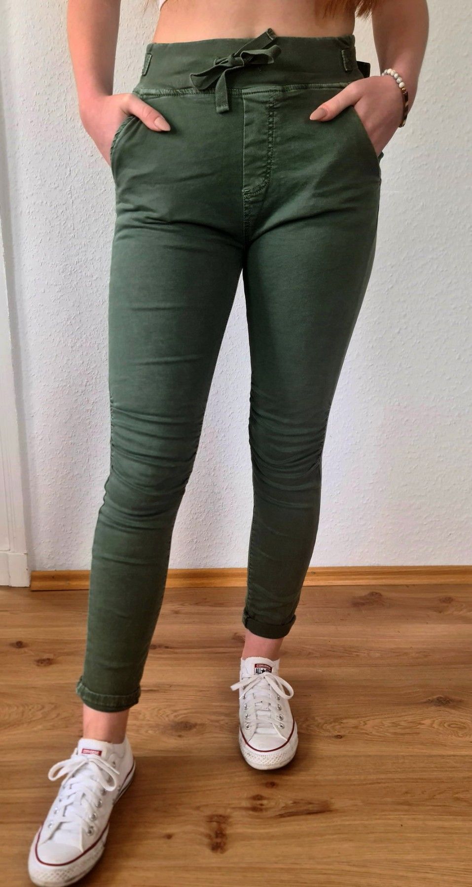 Melly & Co Hose Jogger Jeans Jogpant 8139-4 Denim Stretch dunkles Khaki Gr. XS-XL