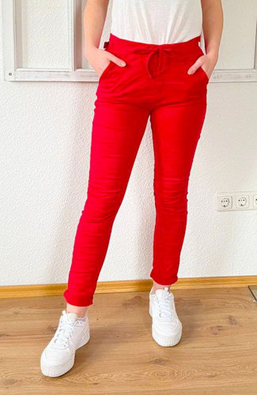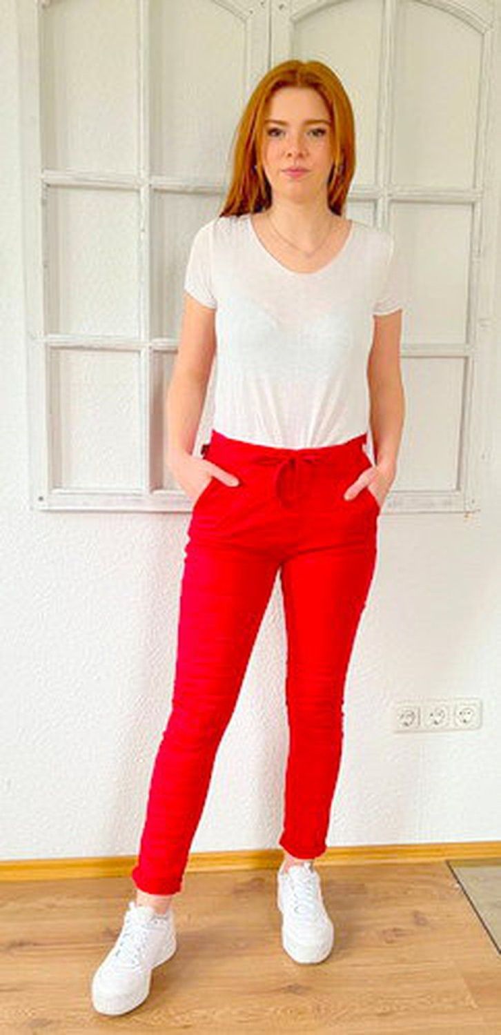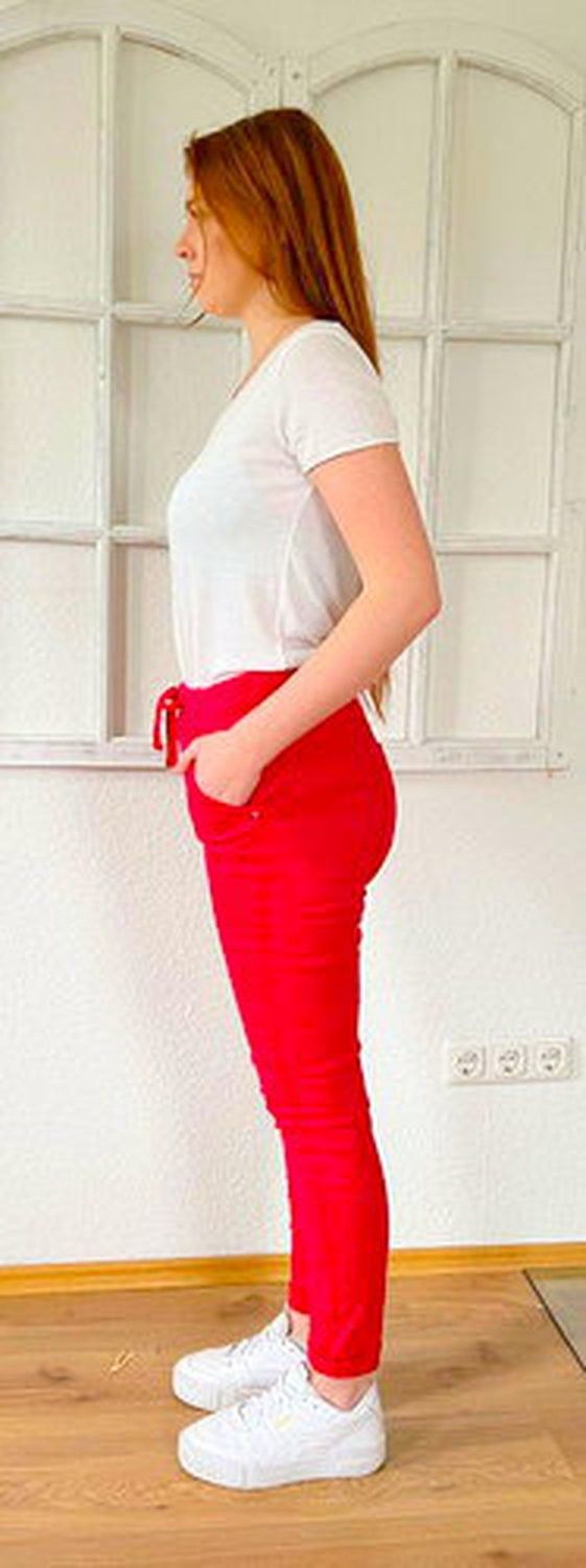 Melly & Co Hose Jogger Jeans Jogpant 8139-8 Stretch Trendfarbe Rot S-XXL