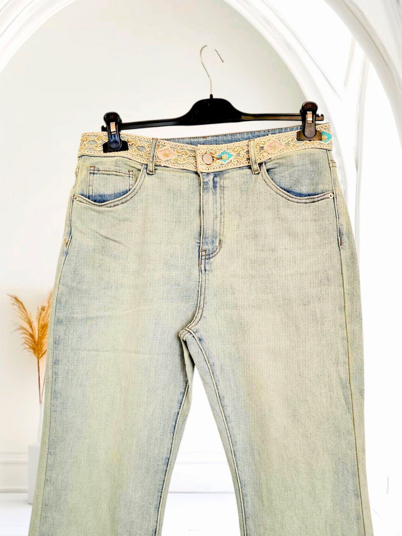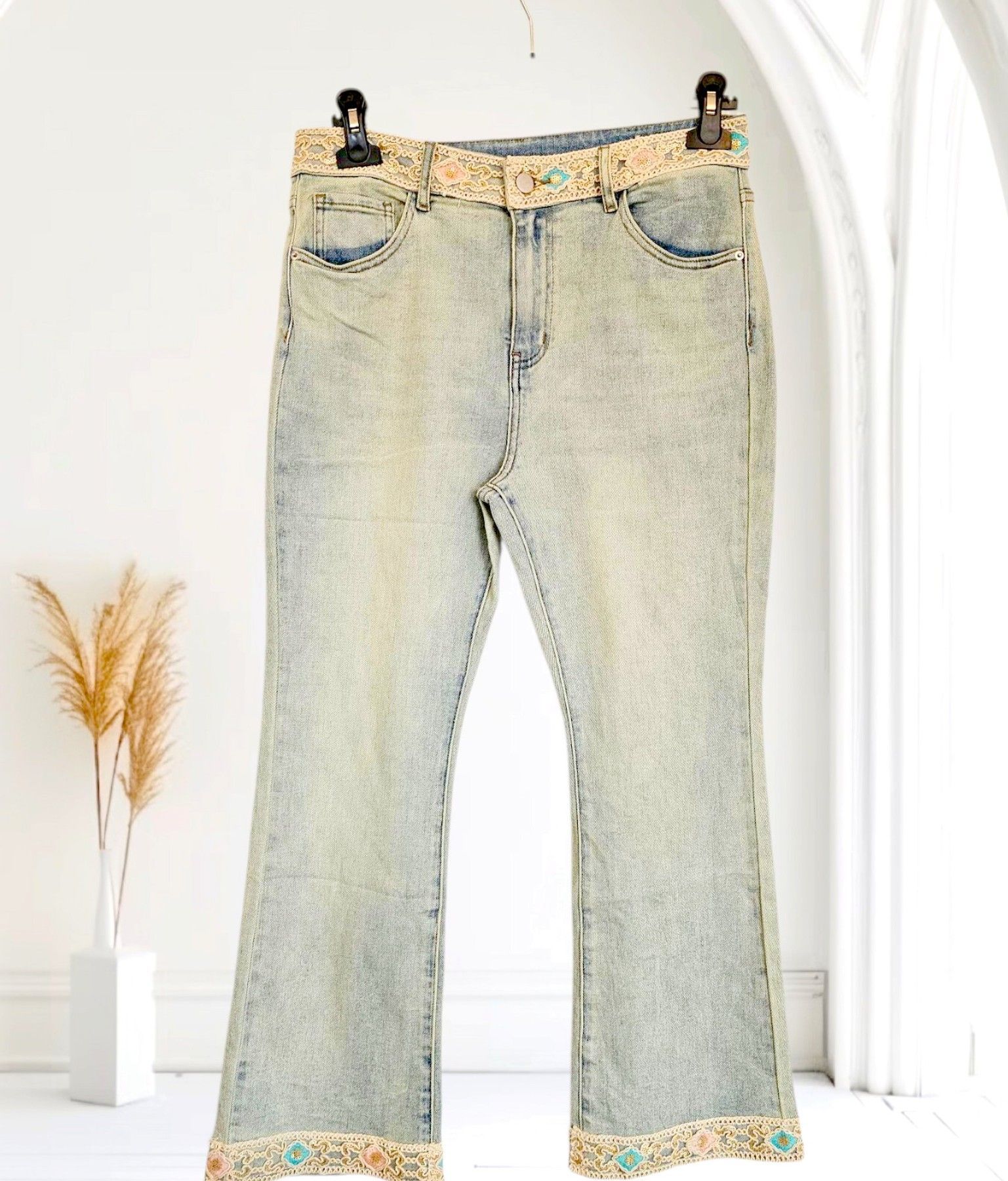 Melly & Co. Jeans Hose MC 7332 Stretch bestickt gerades Bein Farbverlauf Hellblau