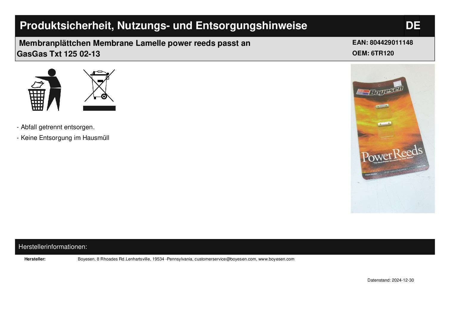 Membranplättchen Membrane Lamelle power reeds passt an GasGas Txt 125 02-13