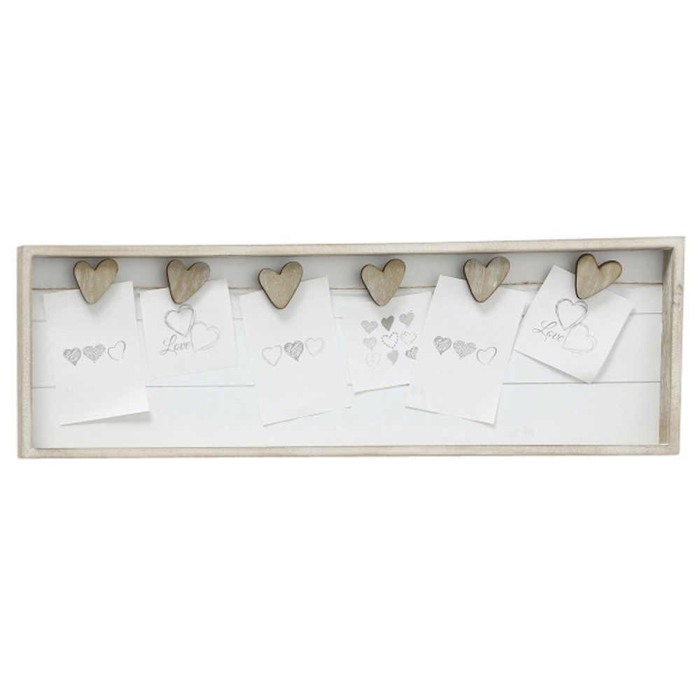 Memohalter AMY grau beige weiß aus Holz Memoboard mit Klammern - GRAUE HERZEN