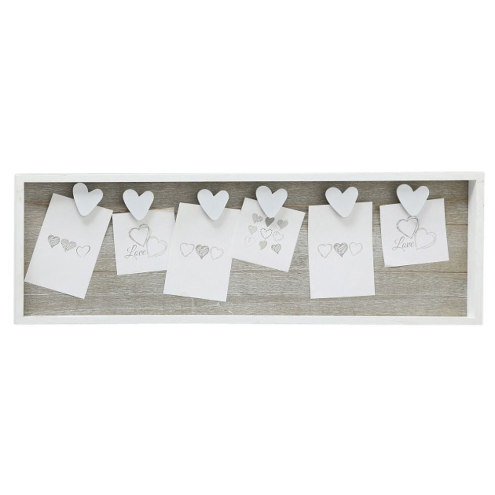 Memohalter AMY grau beige weiß aus Holz Memoboard mit Klammern - WEISSE HERZEN
