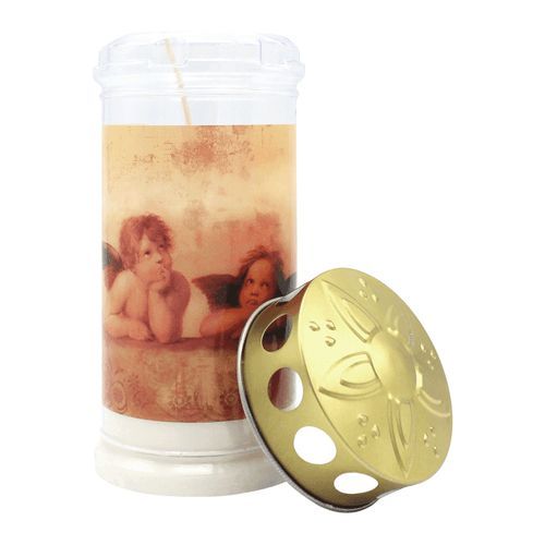 Memoriam-motivkerze „Engel", Nr. 410, Aeterna, mit Golddeckel, 75/170 mm, 30% Öl