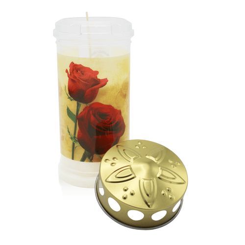 Memoriam-motivkerze „Rosen“, Nr. 413, Aeterna, mit Golddeckel, 75/170 mm, 30% Öl