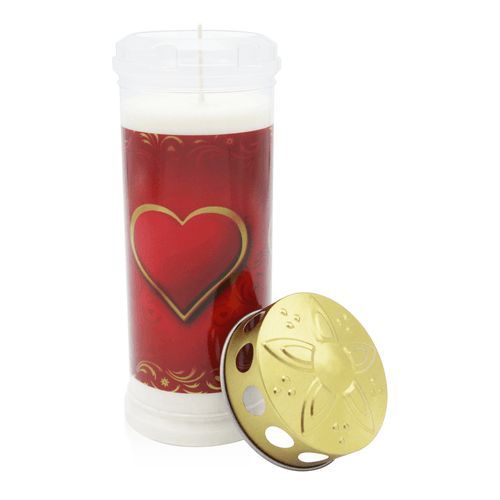 Memoriam-motivkerze „Rotes Herz“, Nr. 641, Aeterna, mit Golddeckel, 75/210 mm, 3