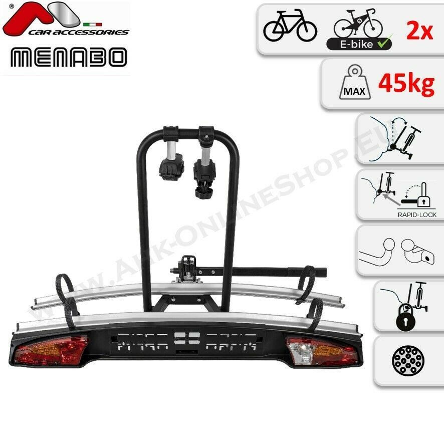 Menabo Merak Rapid Fahrradträger für 2 Räder eBikes Anhängerkupplung Heckträger