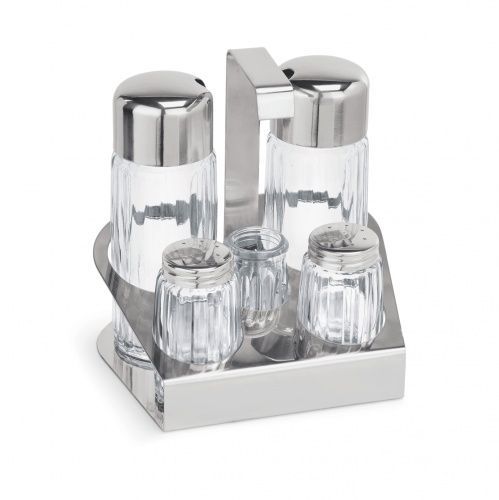 Menage, Glas / Edelstahl / CNS, 6-teilig, Öl, Zahnstocher, Salz / Pfeffer