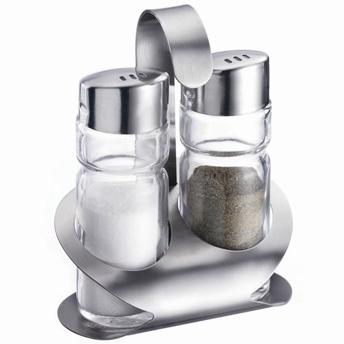 Westmark Menage Salz + Pfeffer "Wien", 3-teilig Gestell und Deckel Edelstahl/Behälter transpar