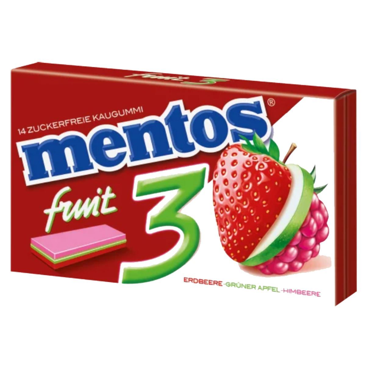 Mentos Gum 3 Fruit Erdbeere Grüner Apfel Himbeere Geschmack 33g