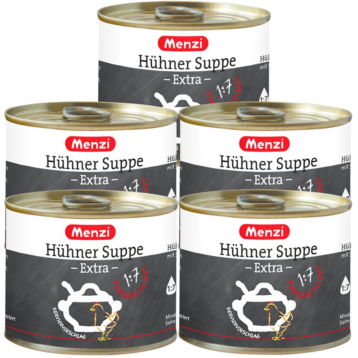 Menzi wärmende klarende unverdünnte Hühnersuppe Extra 5 Dosen a 200ml