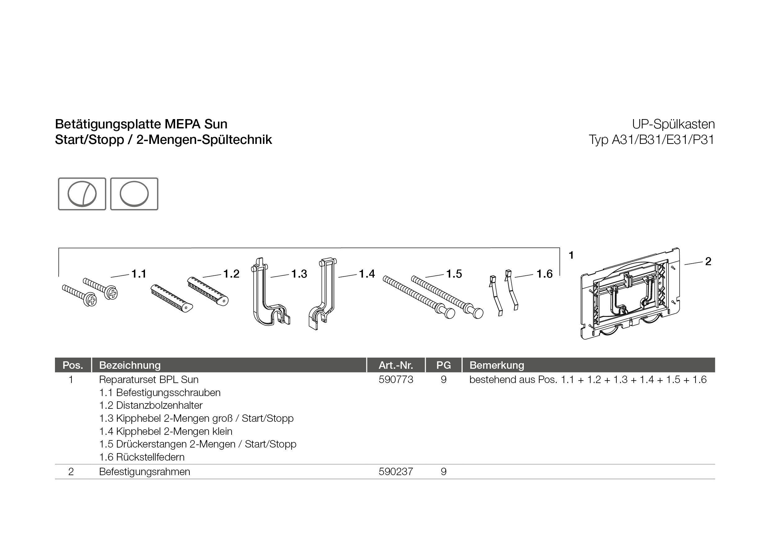 MEPA MEPAsun Betätigungsplatte für A31/B31 2-Mengen, weiß