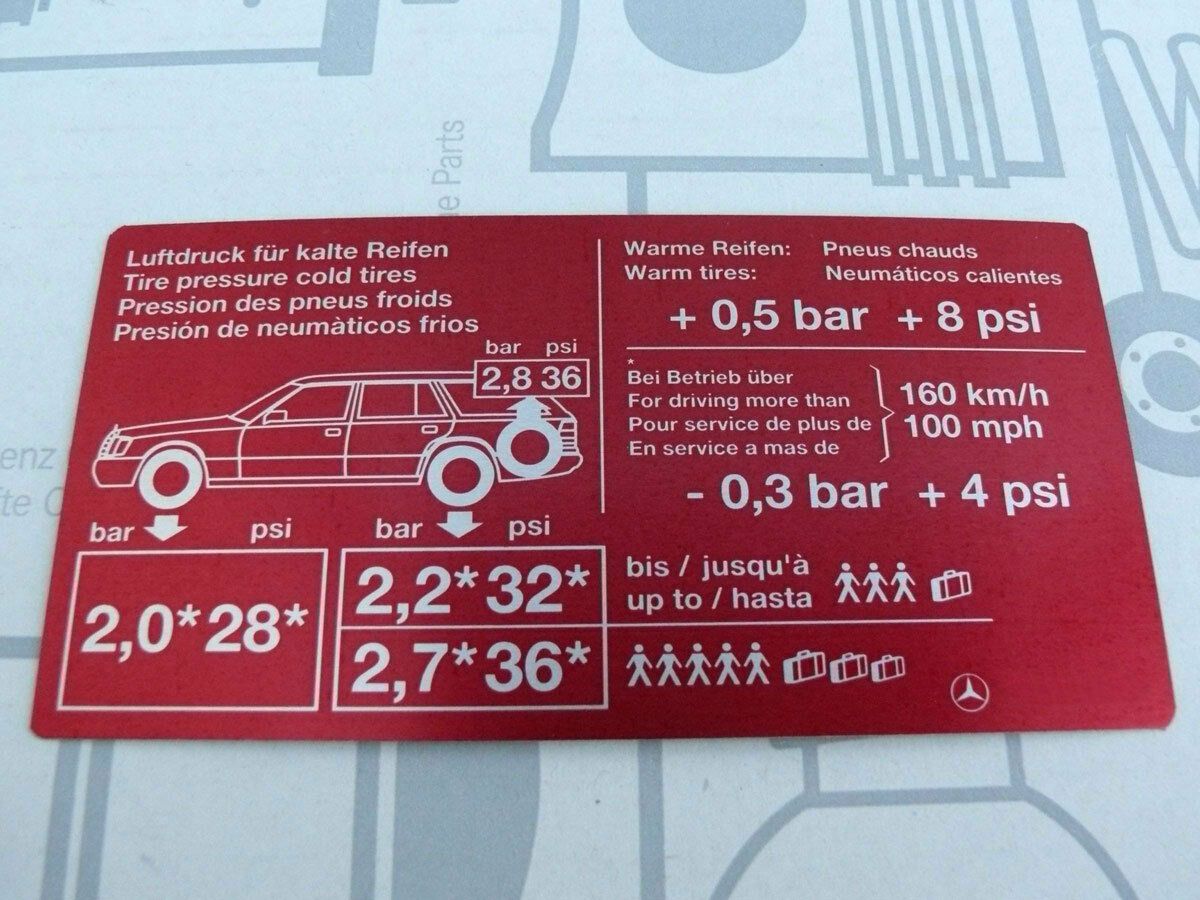 Mercedes Aufkleber Reifendruck / Tankklappe W123 T-Modell NOS!