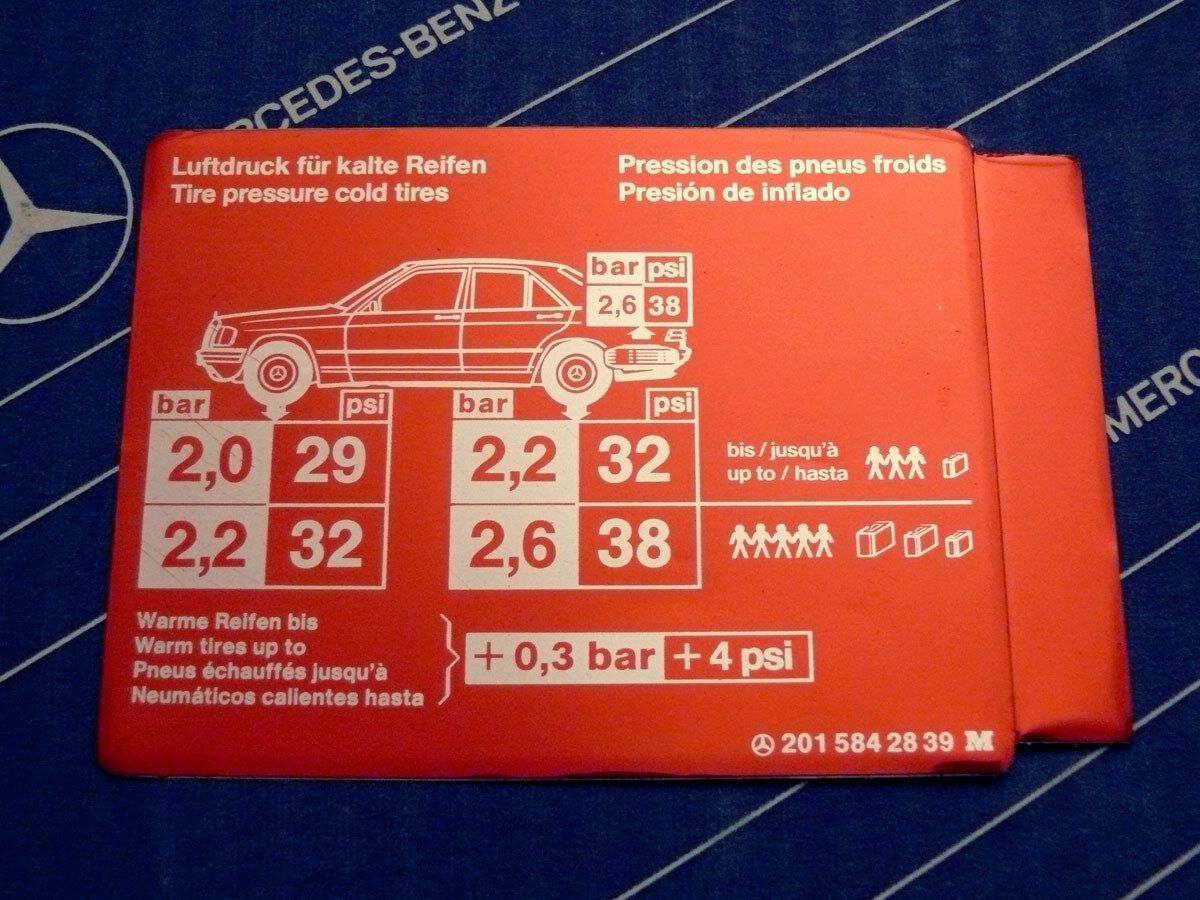Mercedes Aufkleber Reifendruck / Tankklappe W201 190E NOS! Restposten!