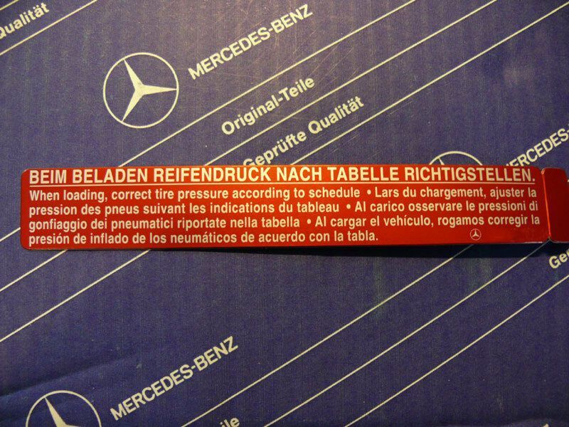 Sie bieten auf einen neuen Warn-Aufkleber für die Kofferraum-Traverse Beim Beladen Reifendruck nach Tabelle richtigstellen für die Modelle W107, W108, W109, W110, W111, W114, W115, W123, W124, W126, W201. Es handelt sich um ein Mercedes-Originalteil. Kein OEM-Nachdruck oder ähnliches. Bei einem Vers