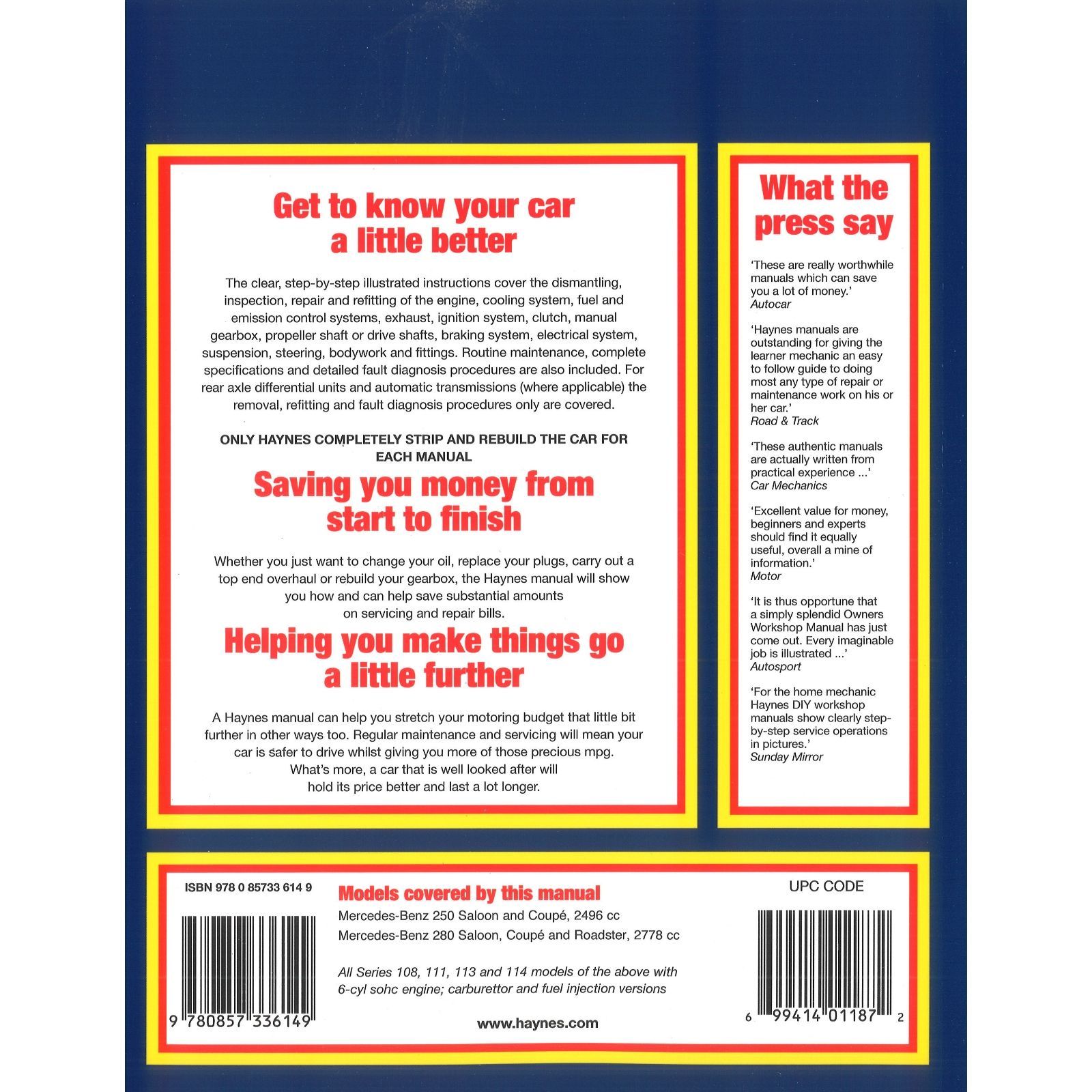 Mercedes-Benz 250 & 280 1968-1972 6-Zylinder SOHC Reparaturanleitung Haynes