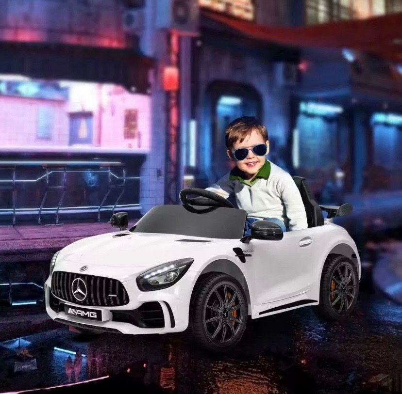 Mercedes Mercedes-Benz AMG GTR Elektroauto Kinder 12V Auto Weiß mit Fernbedienung Neu