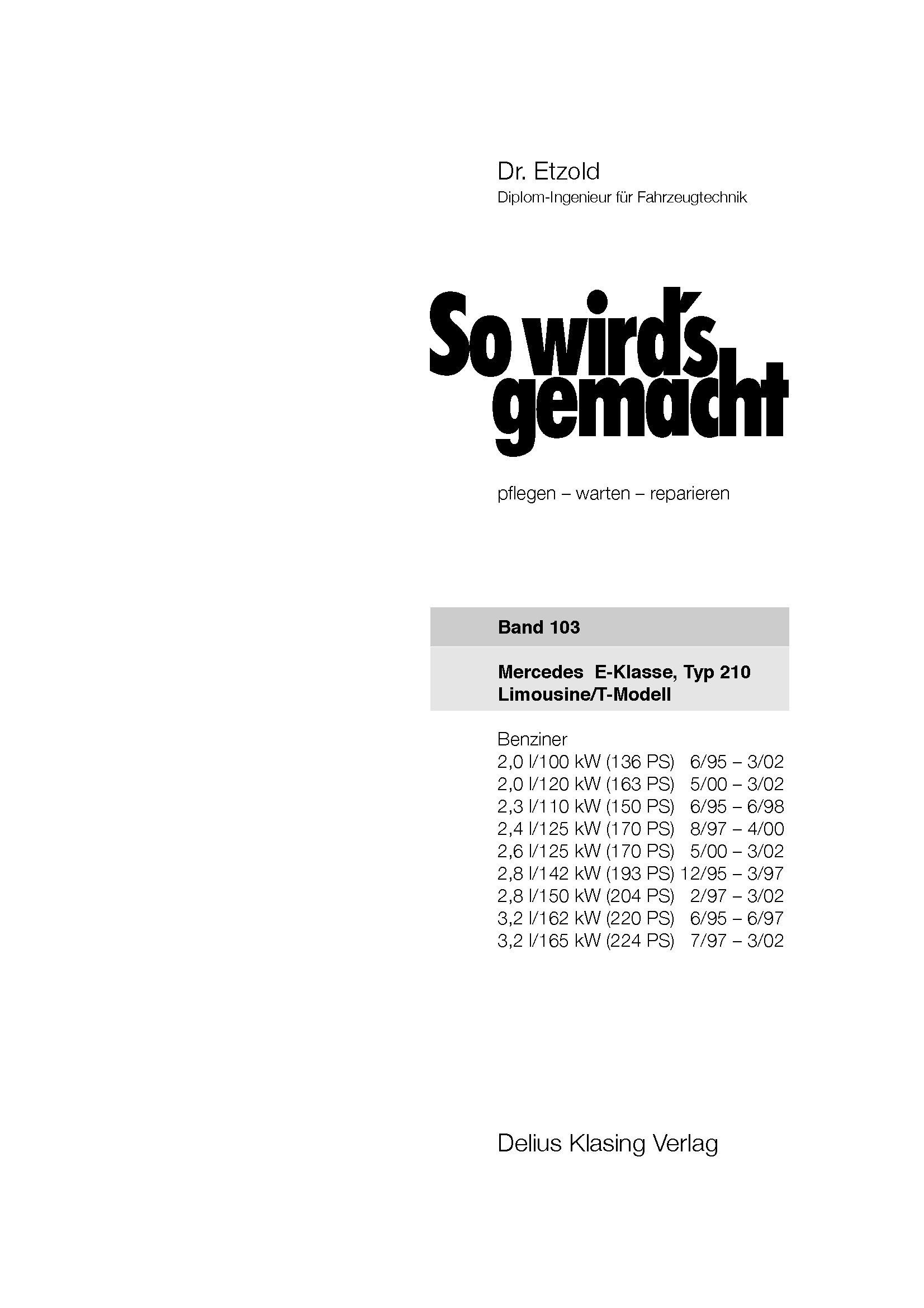Delius Klasing Verlag Mercedes-Benz E-Klasse W210 1995-2002 So wirds gemacht Reparaturanleitung Etzold