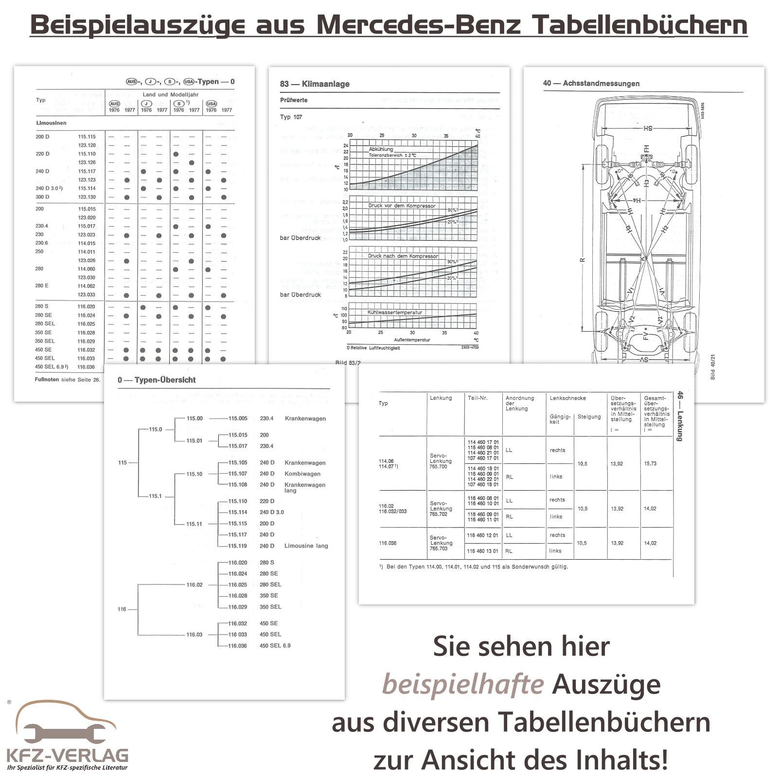 Mercedes-Benz Typ 170 180 190 219 220 300 etc. Ausgabe 1957 Tabellenbuch
