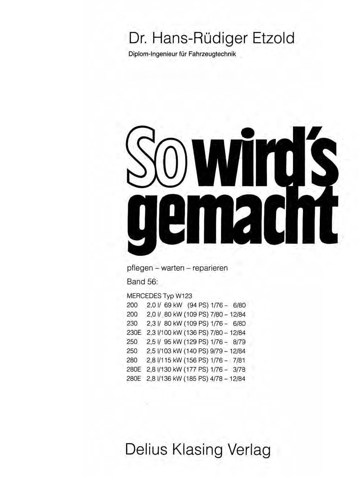 Delius Klasing Verlag Mercedes-Benz W 123 01.1976-12.1984 So wird's gemacht Reparaturanleitung Etzold