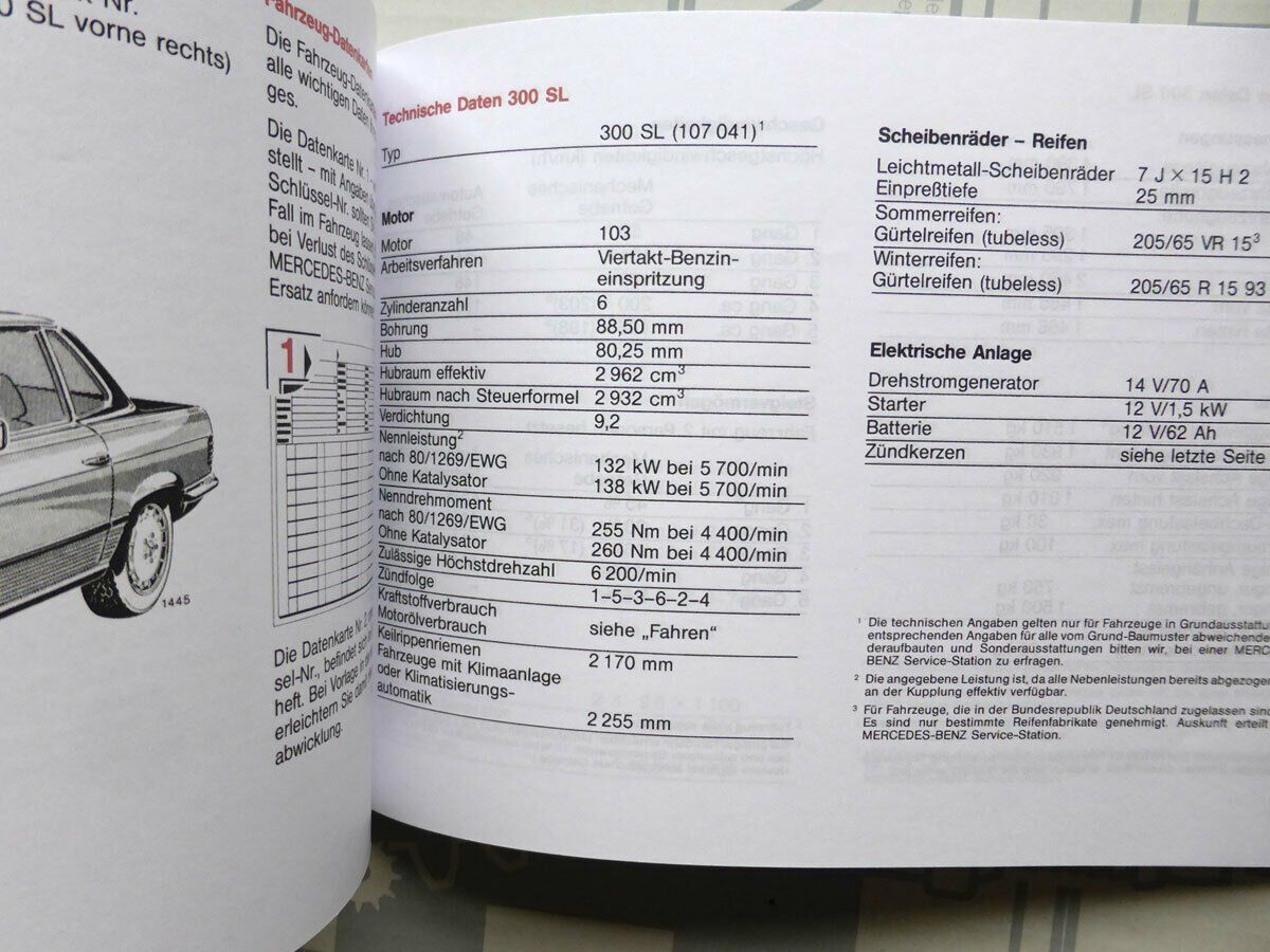 Mercedes R107 300SL 420SL 500SL Bedienungsanleitung von 1989 NOS!