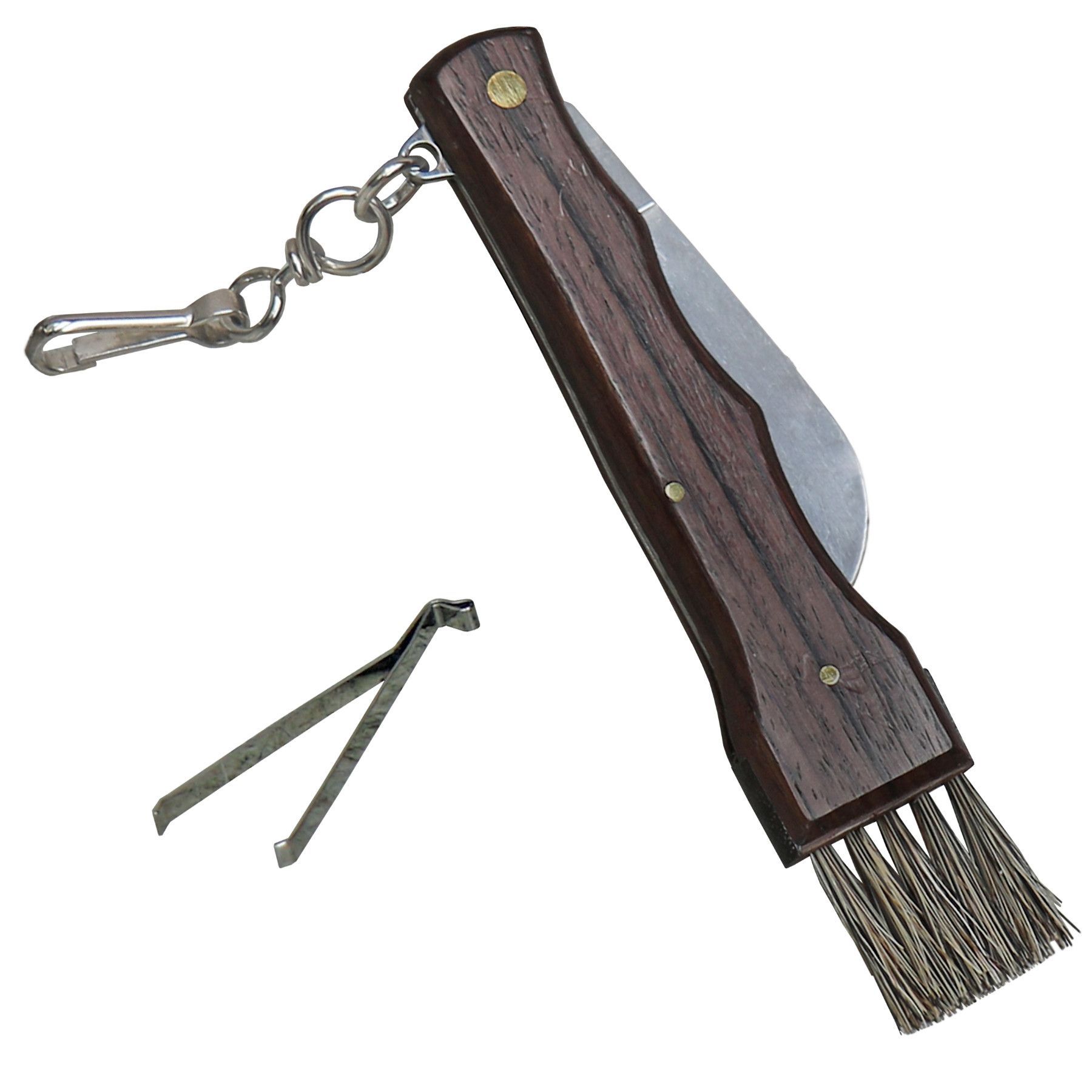 Mercury Pilzmesser mit Cocoboloholzgriff, Pinzette feste Bürste und Karabiner
