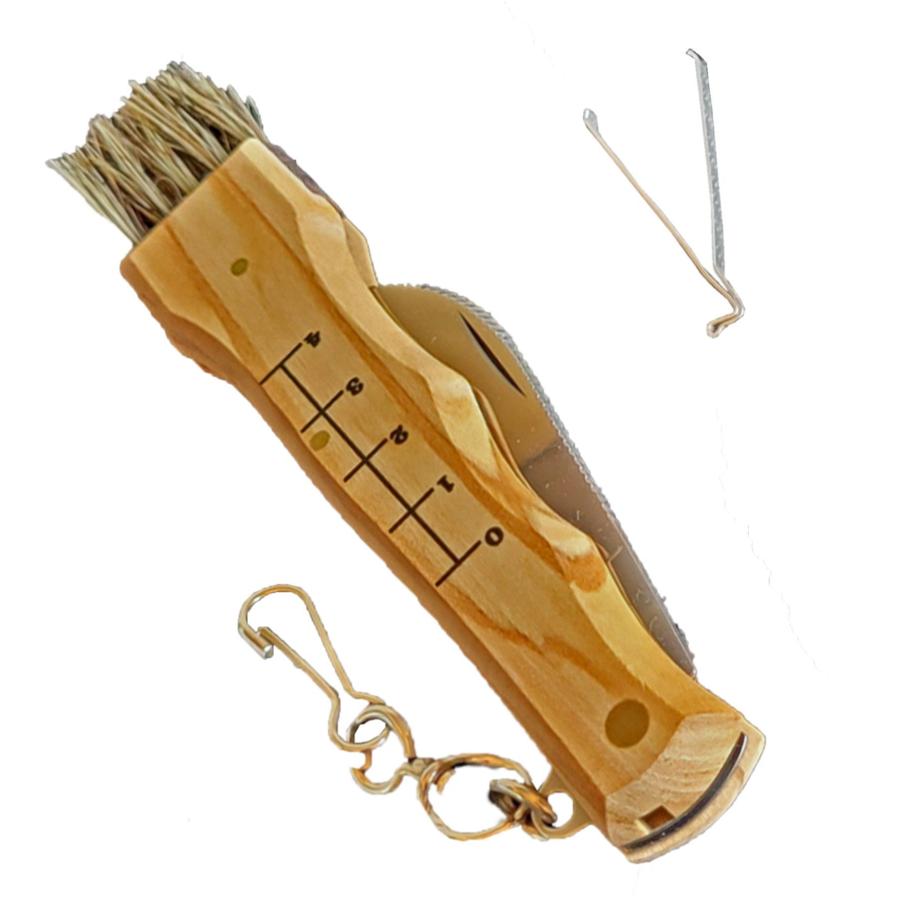 Mercury Pilzmesser mit Olivenholzgriff, Pinzette feste Bürste und Karabiner
