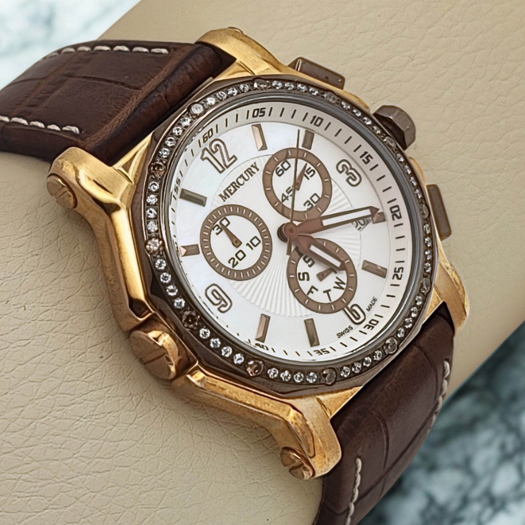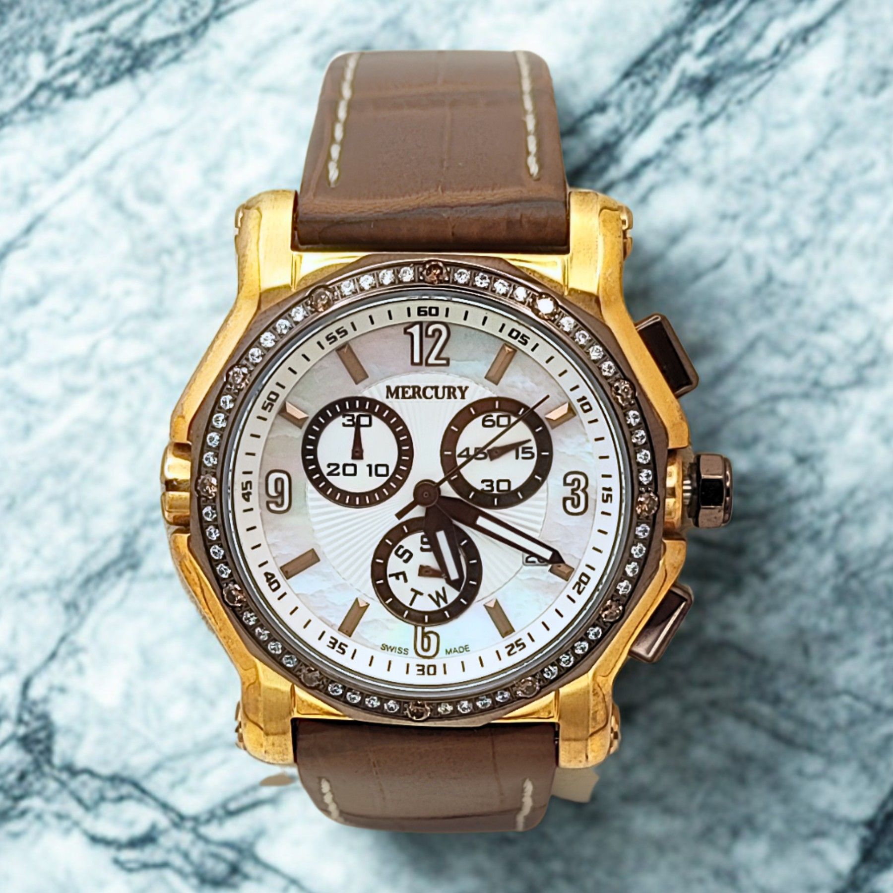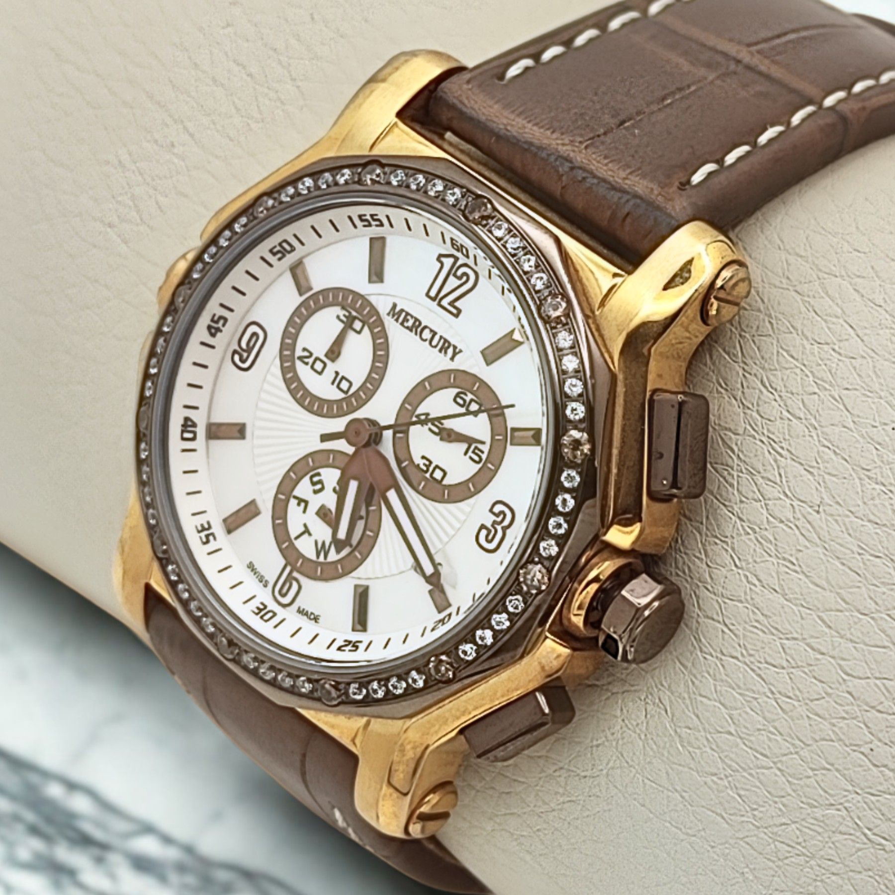 Swiss Made - Chronograph - Mercury ME1075-RCL-S-7 Chronograph Swiss Watch – Eleganz und Funktionalität in Perfektion Die Mercury ME1075-RCL-S-7 ist ein faszinierendes Beispiel für Schweizer Uhrmacherkunst, das klassische Eleganz mit moderner Funktionalität vereint. Diese Damenchronographen-Uhr verkö
