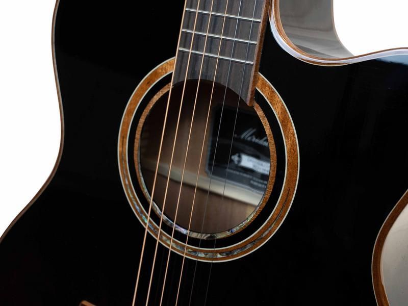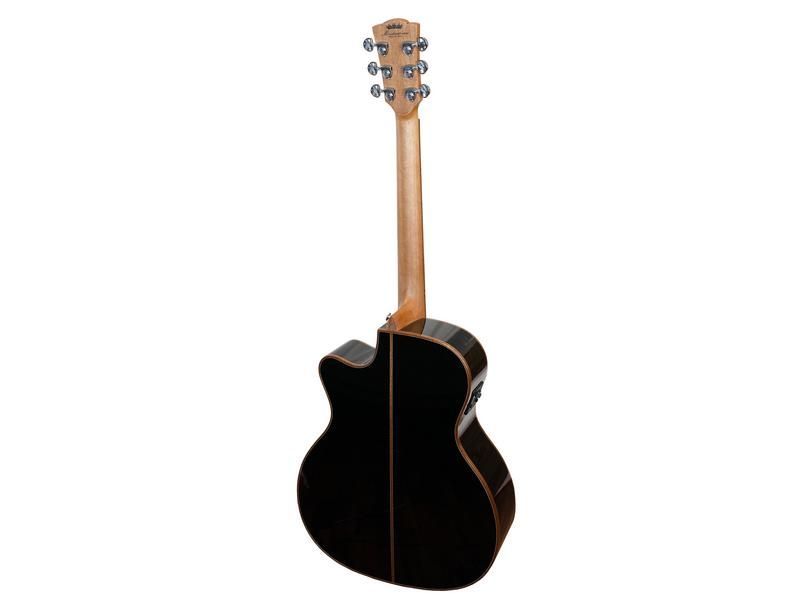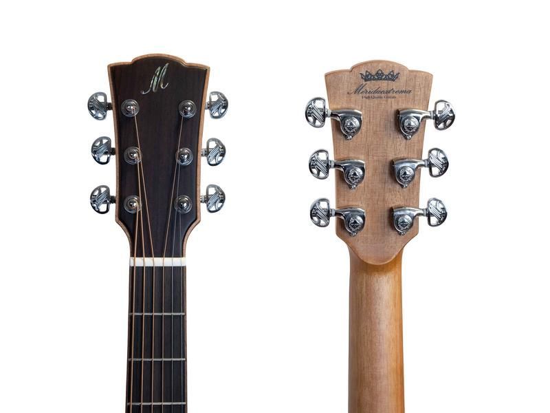 Merida DG-15BKGACES Diana Black Bauform: Grand Auditorium Decke: Fichte, massiv Boden und Zargen: Sapele Hals: Mahagoni Griffbrett: Palisander Mensur: 65 cm Sattelbreite: 43 mm 20 Bünde Sattel und Stegeinlage: Knochen Steg: Omega Mechaniken: DieCast, nickel Pickup: Fishman ISY-201 Saiten: D'Addario