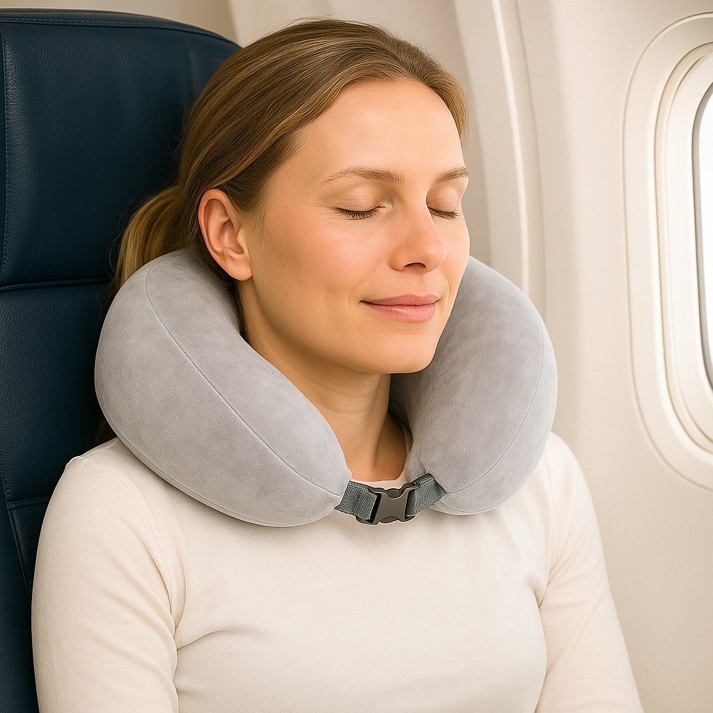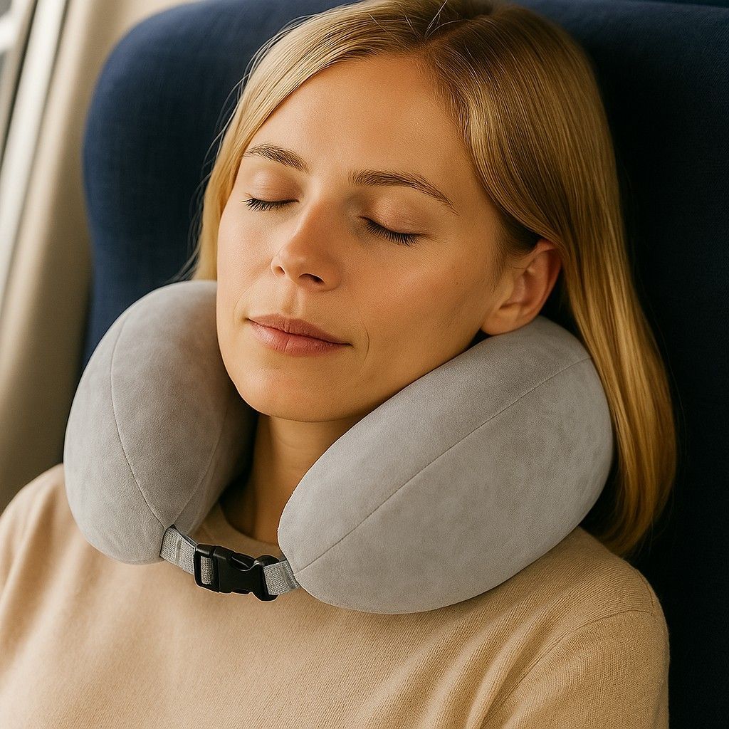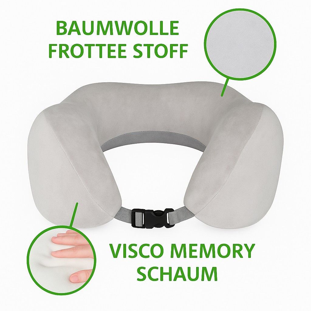 Nackenkissen, Autokissen, Bahnkissen, Travel Pillow mit Memory Foam 27x27x13 cm