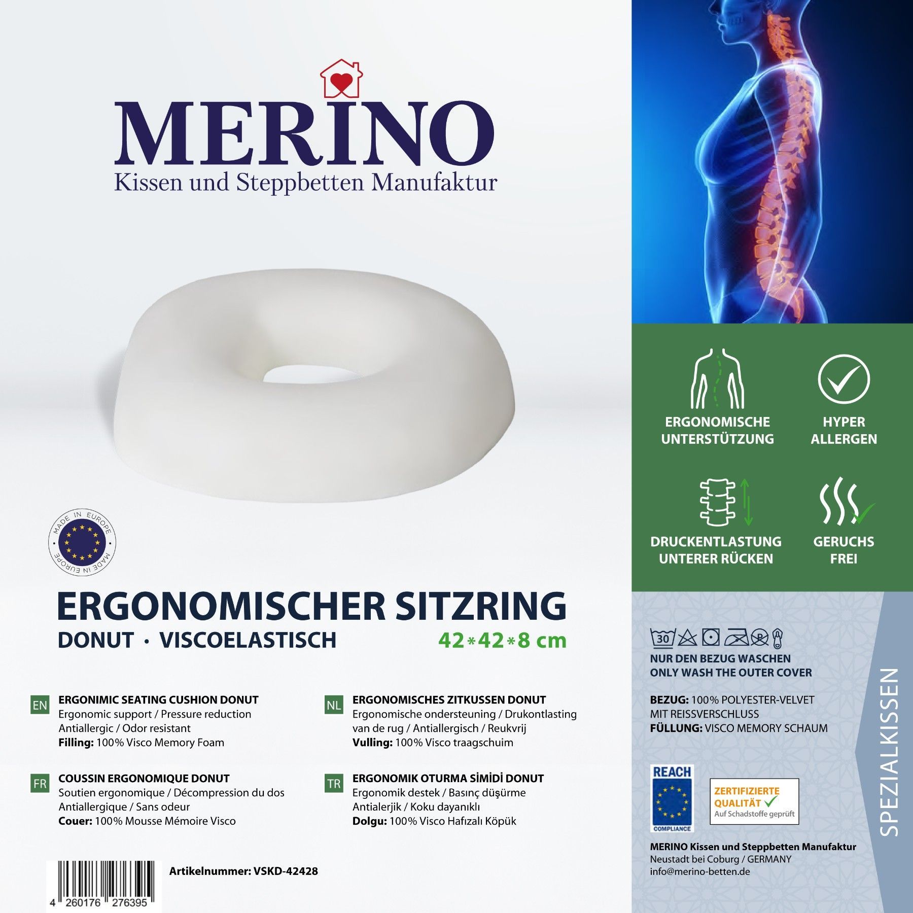 Merino Ergonomischer Sitzring - Donut Sitzkissen Rund Hämorrhoiden Kissen 42×42×8 cm