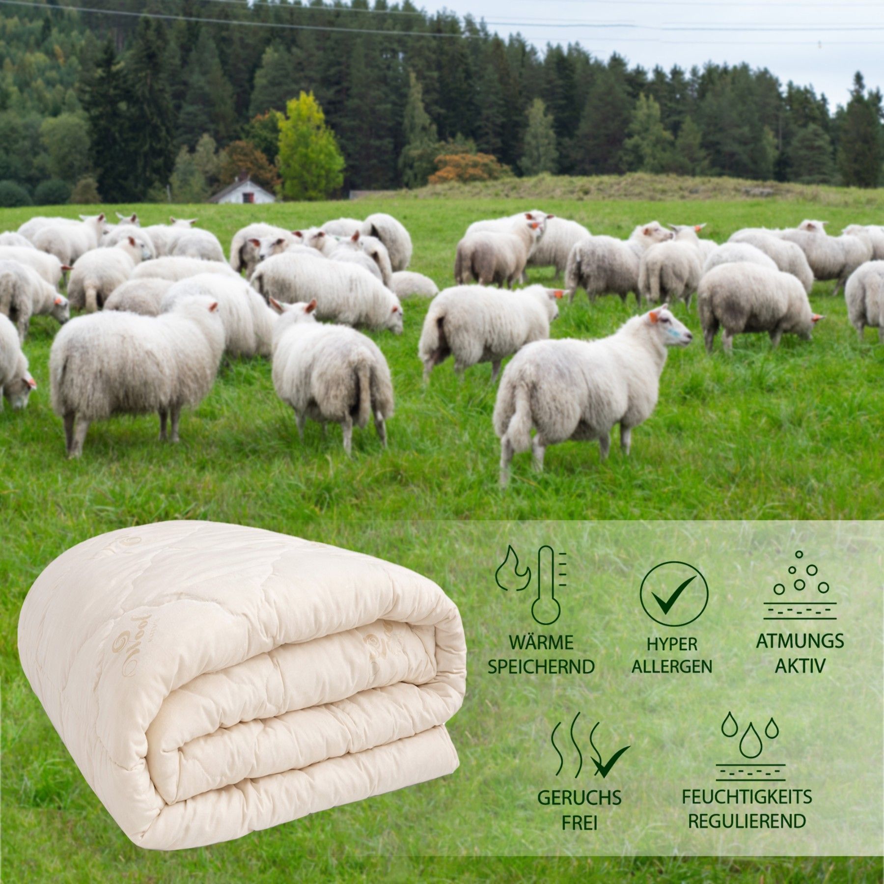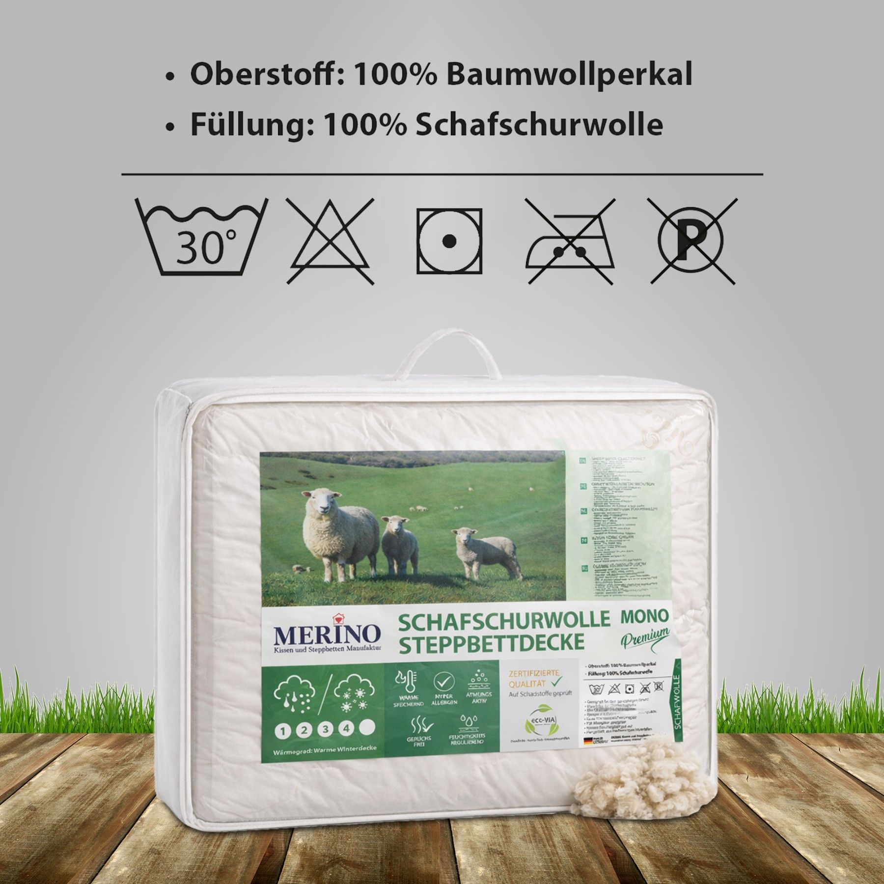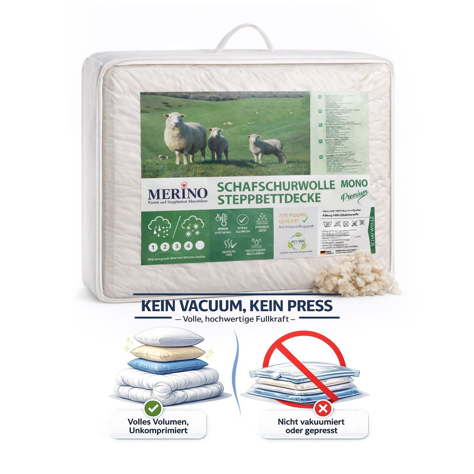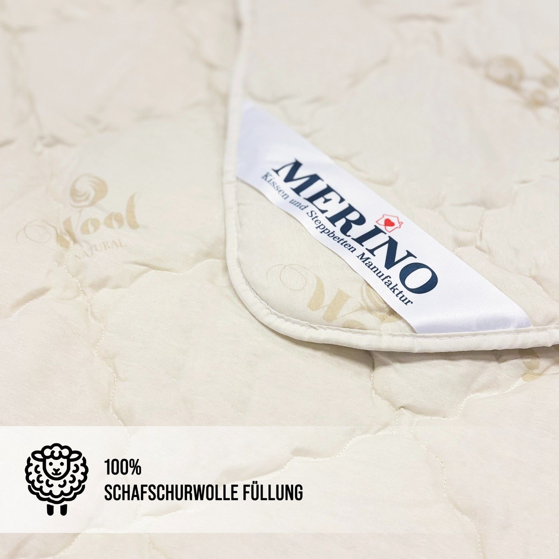 Merino Premium Schurwolle Steppbettdecke | aus 100% reine Schafschurwolle Steppbett