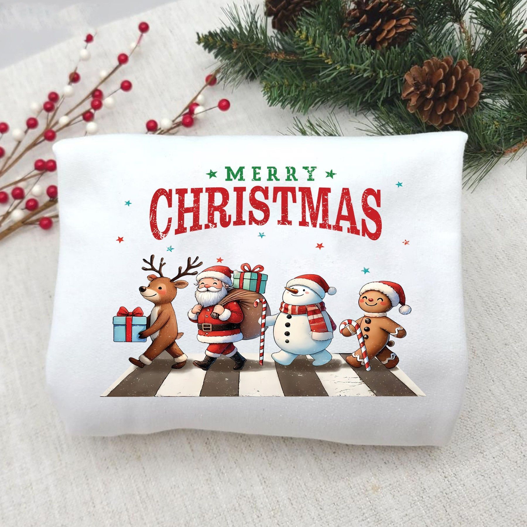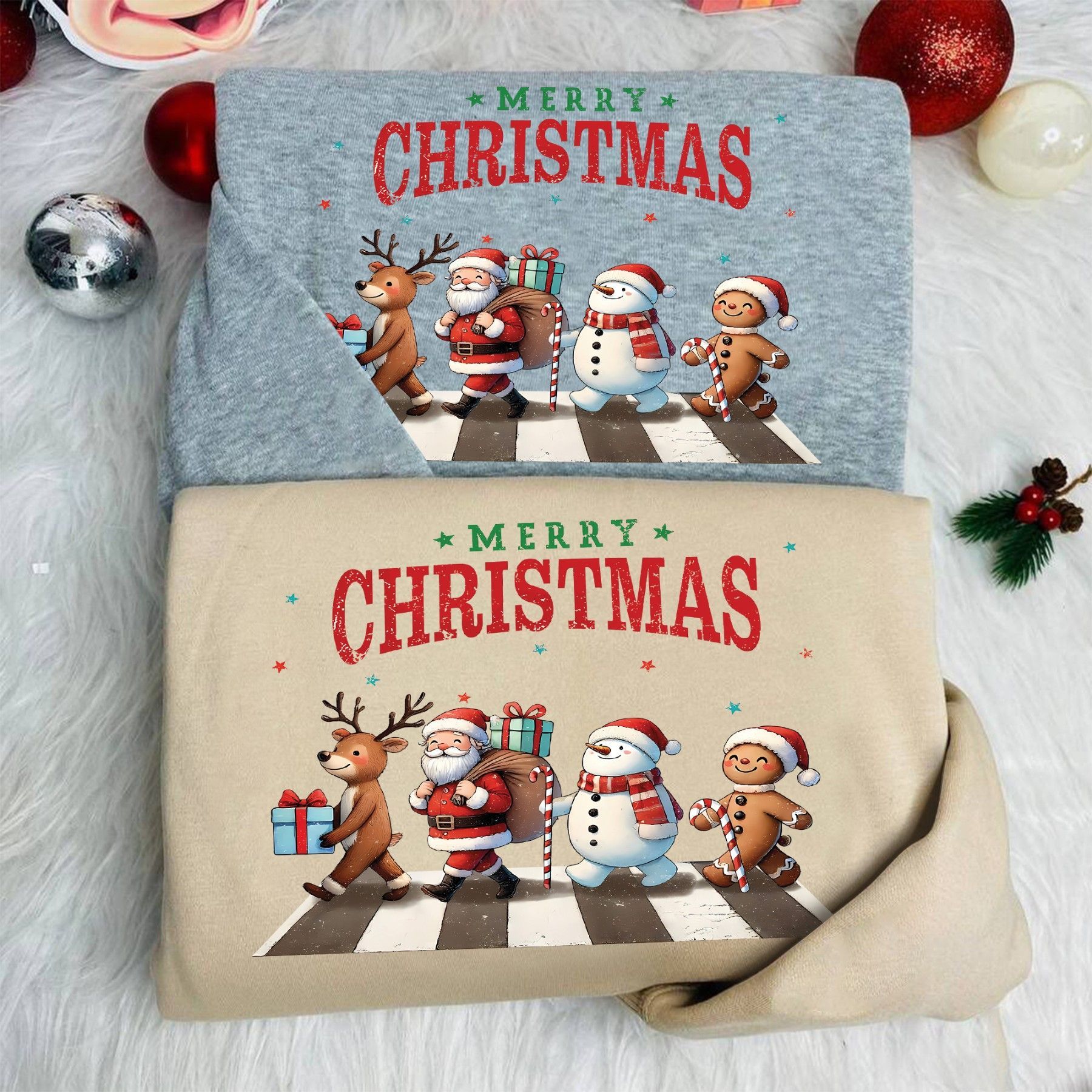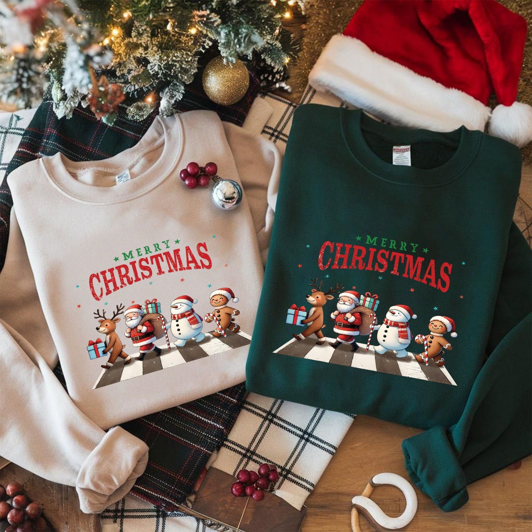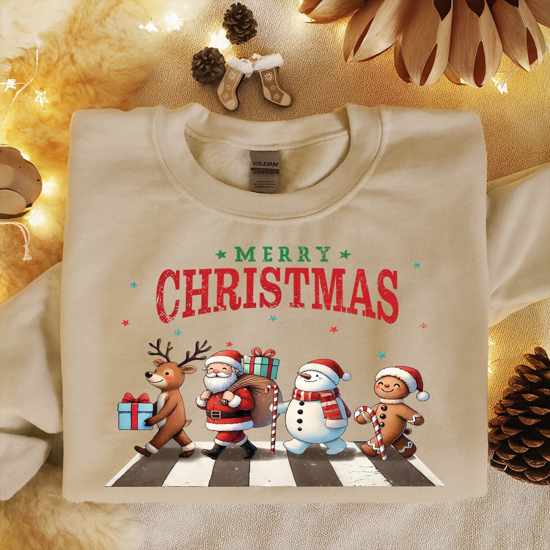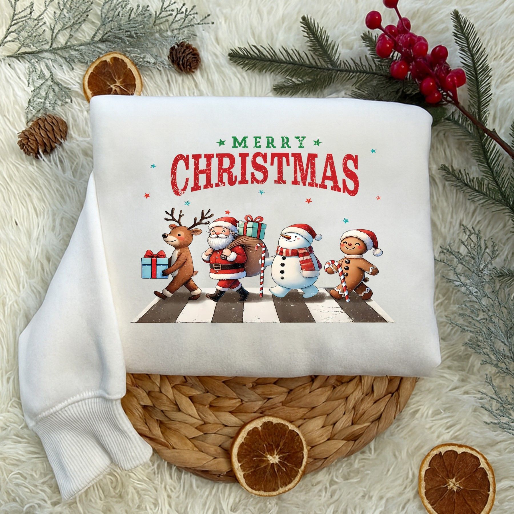 Merry Christmas Shirt, Lustiges Weihnachts T-Shirt, Santa Claus Sweatshirt, Rentier Schneemann Lebkuchen Design, Unisex Winter Geschenk Euro Merry Christmas Shirt – feiere Weihnachten mit Stil! Dieses festliche Design zeigt Santa Claus, ein Rentier, einen Schneemann und ein Lebkuchenmännchen,