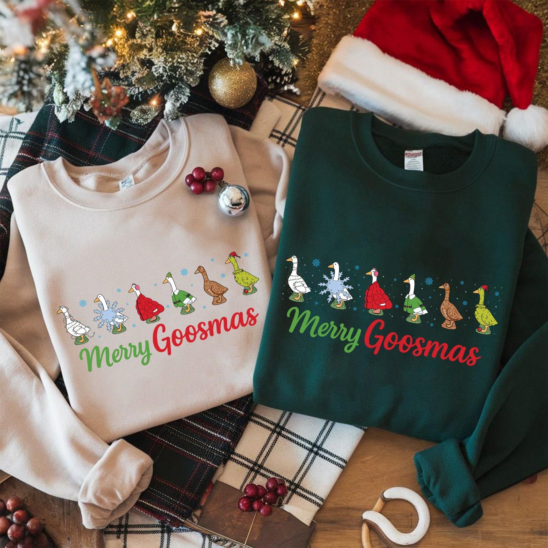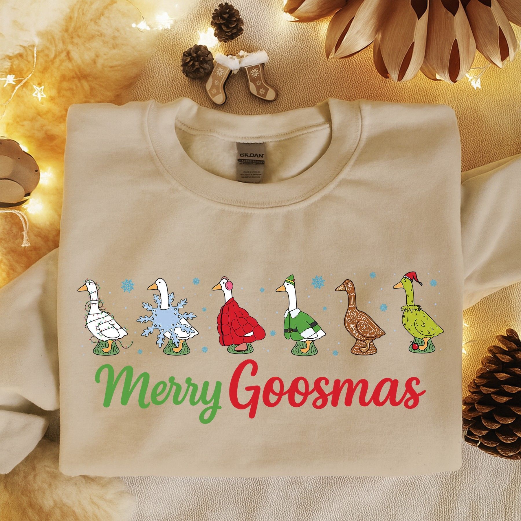 Merry Goosmas Shirt, Weihnachts-Gänse T-shirt, Lustiger Gans Pullover Sweatshirt, Weihnachtsgeschenk für Tierliebhaber, Festliches Motiv • Material: T-Shirt – 100 % Baumwolle für ein angenehmes Tragegefühl. Sweatshirt – 50 % Baumwolle, 50 % Polyester für Wärme und Langlebigkeit. &bu