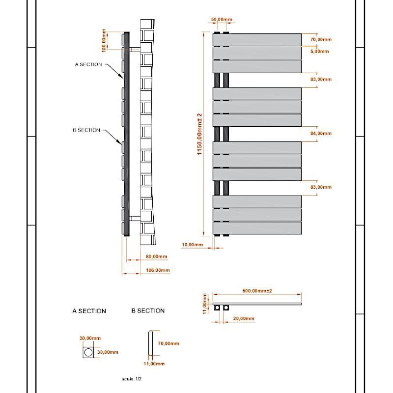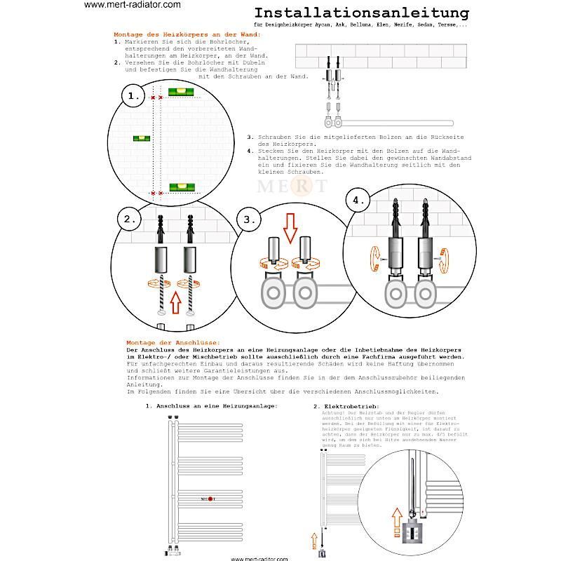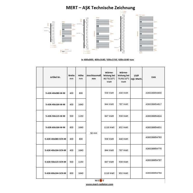 MERT Design Badheizkörper ASK, schwarz, rechts-/linksbündig, verschiedene Größen